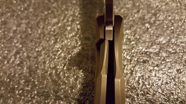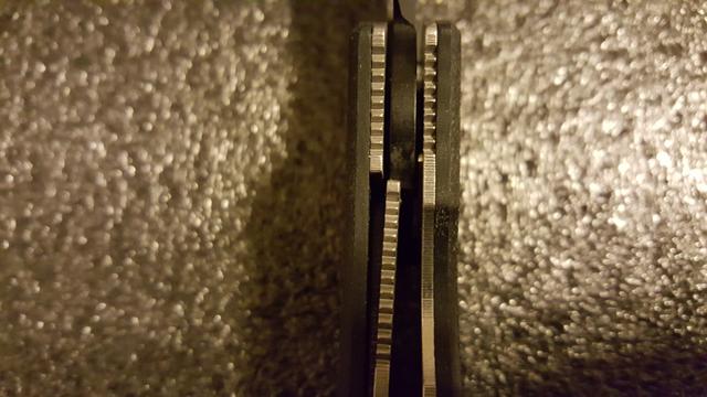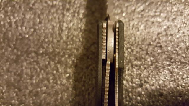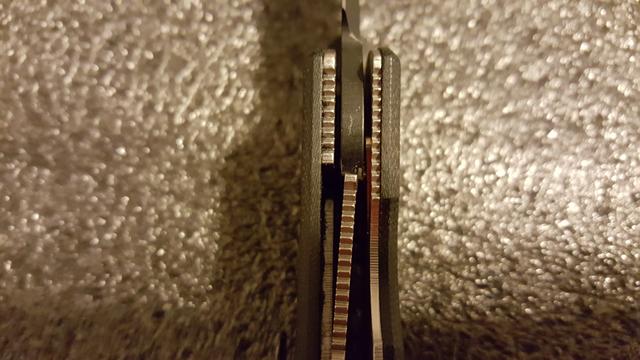Blade sits dead center, locks up solid with no play, and action is smooth
