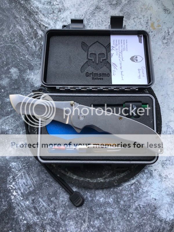 Excellent condition knife. Has a Hoback Rolling Detent which allows you to set the detent as heavy or light as you'd like. Flips like a champ at the right HRD positions. The knife is in almost new condition, there are a few very light scratches on the presentation scale that my camera could not pick up (I can try to take a detailed video to show it in different light/angles if needed). Comes with a FFKW travel case (picture in imgur album). Numbered #1 of 25 made.