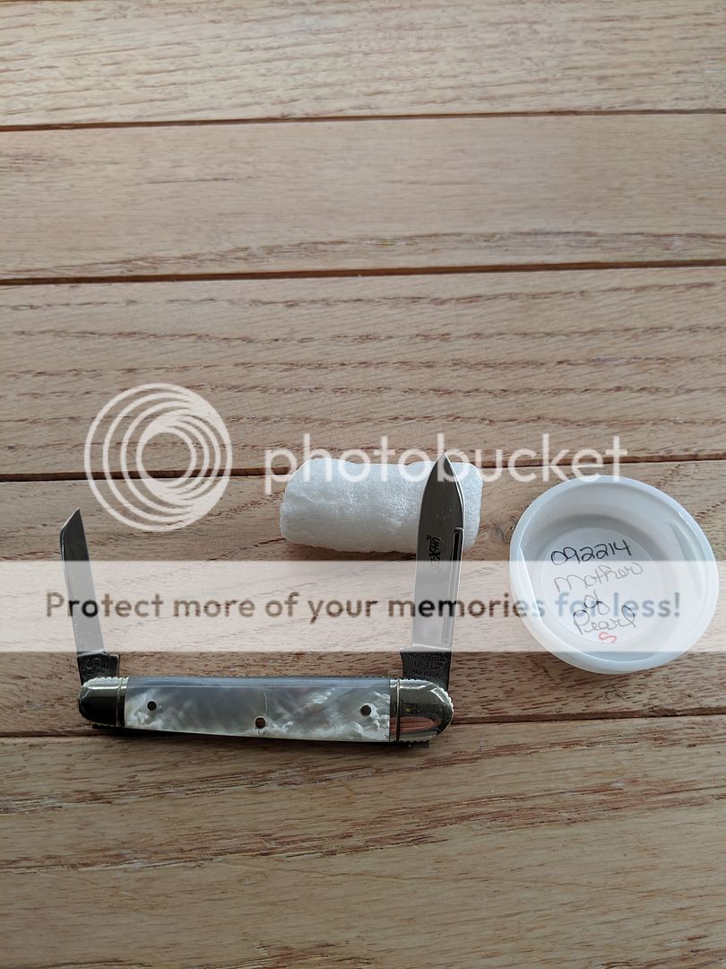 It is marked as a second but I've yet to find a flaw. Nice even 4-5 pull and it snaps like a gator for being such a small knife. Comes with the tube and wax paper. Unused, unsharpened. The scallop liners is a really cool touch...wish we could see more of that.