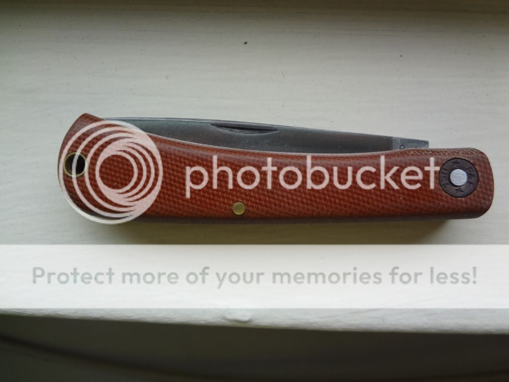 Hi all. For sale today is a GEC #71 Bull Nose in natural canvas micarta. This is simply an amazing knife, especially at its price range. It has a very thinly ground drop point blade made of 1095 carbon steel, perfect blade centering, flush liners in all the positions but the half stop, excellent fit and is all round a perfect example. The natural canvas covers have a wonderful feel to them, grippy and warm. This has been lightly used but would pass as like new with light scratches on the liners and blade. The factory edge is still very sharp. Tube will be included. I would like $80, paypal fees and shipping to the CONUS included. Thanks, please let me know if you have any questions.