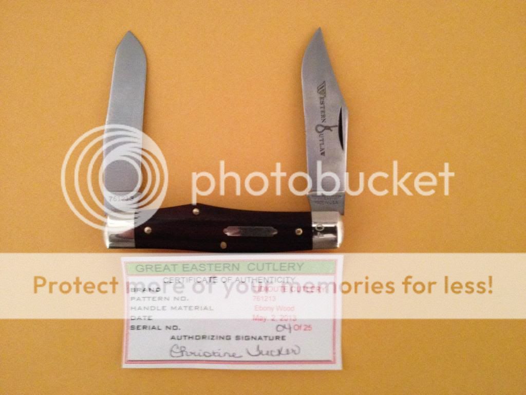 First up is a GEC 76 Western Outlaw with ebony wood handles serial #4. The knife if new in the tube never been used, carried, or sharened.