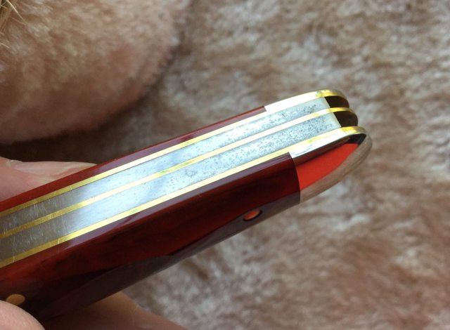 Norcaldude Feedback: +64 / =0 / -0 Joined Dec 19, 2014 Messages 1,983 Jun 9, 2016 #1 $100 paypal, includes priority shipping in the US. This is a user and has patina on the blade and some sort of spotting on the back spring. Includes tube. message me here or email me: cattledog at gmail dot com