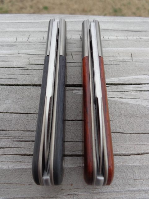 Lionsteel Roundhead Santos Wood - From the original run. Excellent centering, snap and zero blade play. Carried a handful of times, but in pristine condition. Comes with box and European leather slip. $115 SOLD