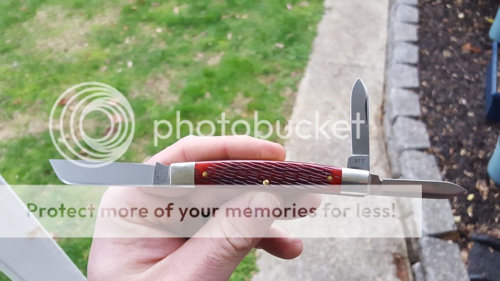 Next up is a blood red gec 38 grindling whittler in blood red jig bone i bought this as new in tube and it is in great shape but if you look close there is a small mark on the clip and another on the pen blade it is difficult to see and i had to really try to capture it with my camera just wanting to be completely honest im shooting for 210 tyd SOLD