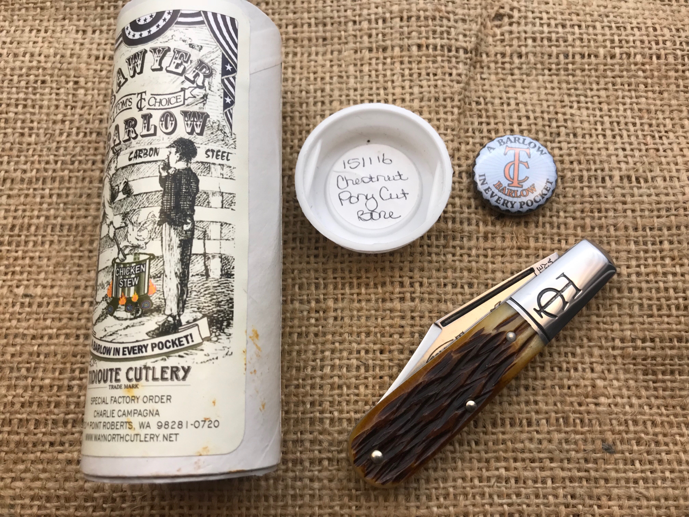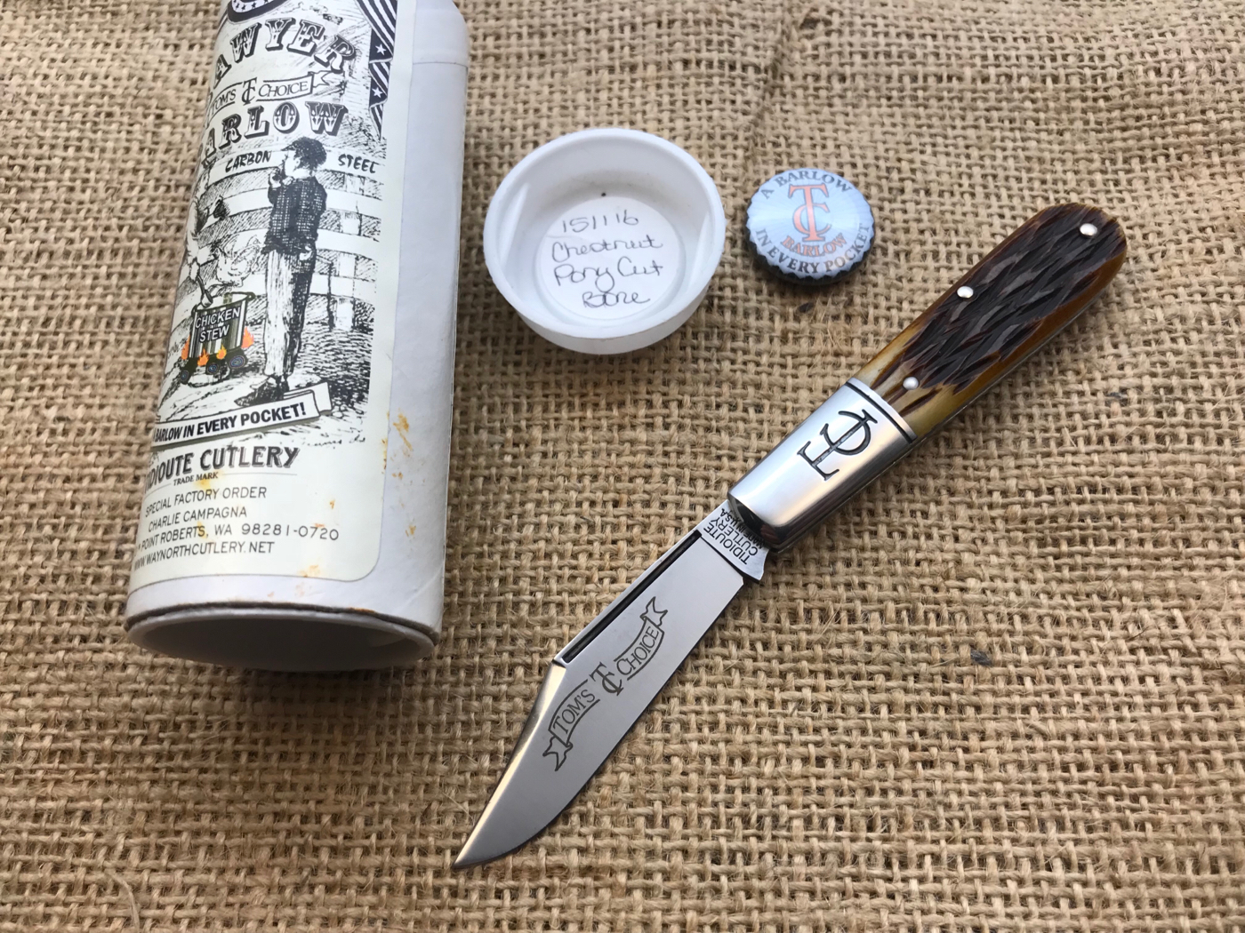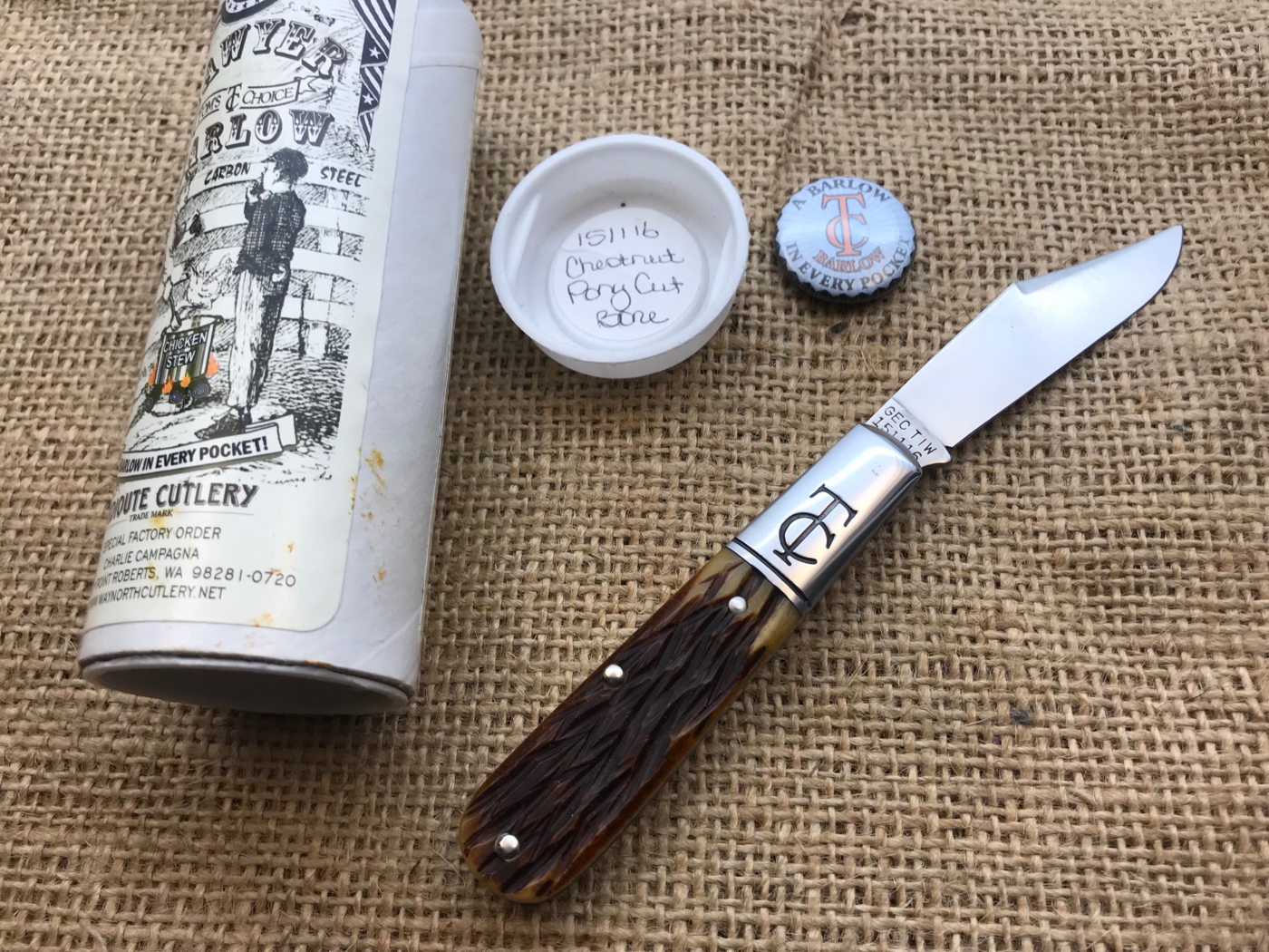 - #15 TC Barlow with Chestnut Pory Cut bone NIB and has button pin. $225