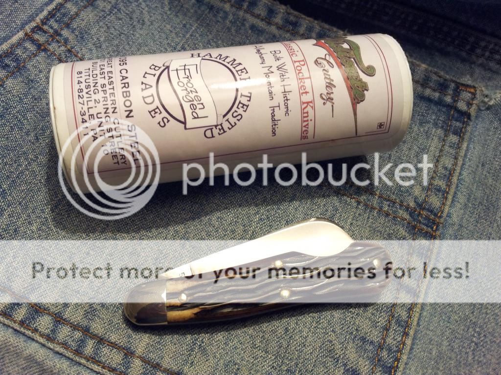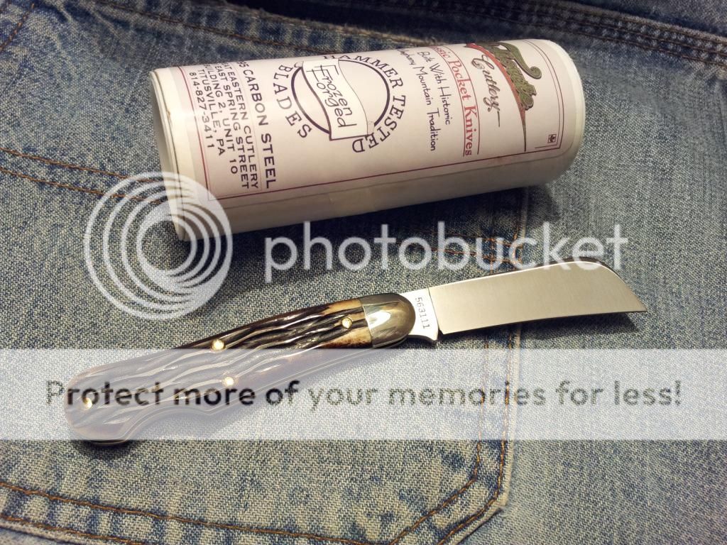 Great Eastern Easy Open Weaver single blade jack. Brand new in tube. Super easy smooth opener with nice snap. Nice dark marbled scales named antique black. A shade off center. No gaps anywhere, good ole GEC quality!.......$60 NOW SOLD Shipped