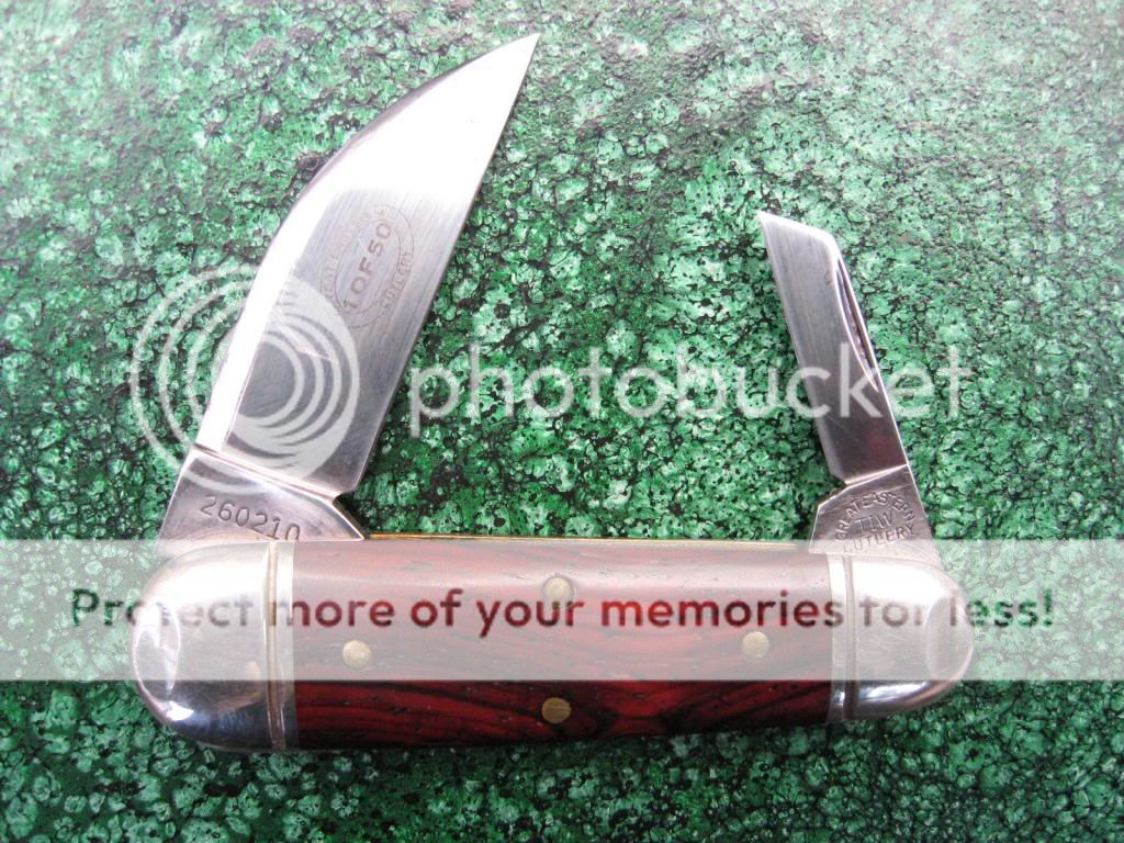 Second is the 53 Furtaker. It too is in excellent working order, but I broke about 1/8 inch off the Wharncliffe blade and re-profiled the tip. SOLD