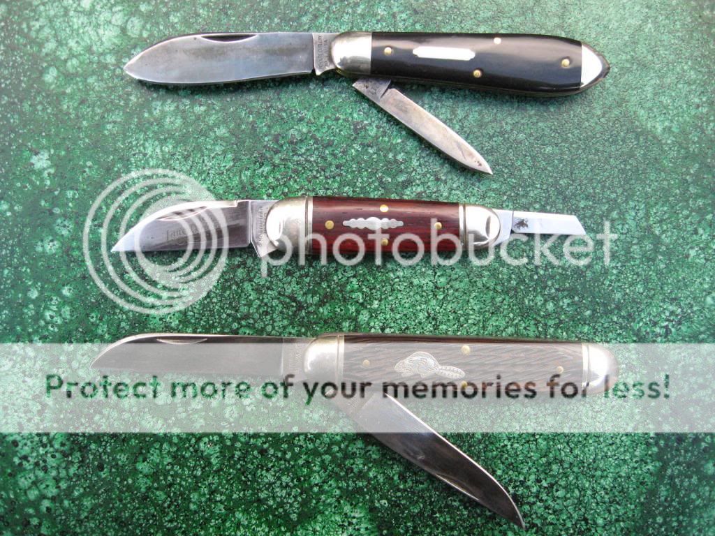 These are used knives: a buffalo horn 852211 bullet jack, a cocobolo 260210 little carver, and a wenge wood 538210 furtaker. These have been neglected and have some minor rust, etc., but are great users. No boxes with these, sorry. I will include the first class shipping to the USA. First "I'll take it" on this thread followed by a PM get's 'em. PayPal or USPS money order only please.