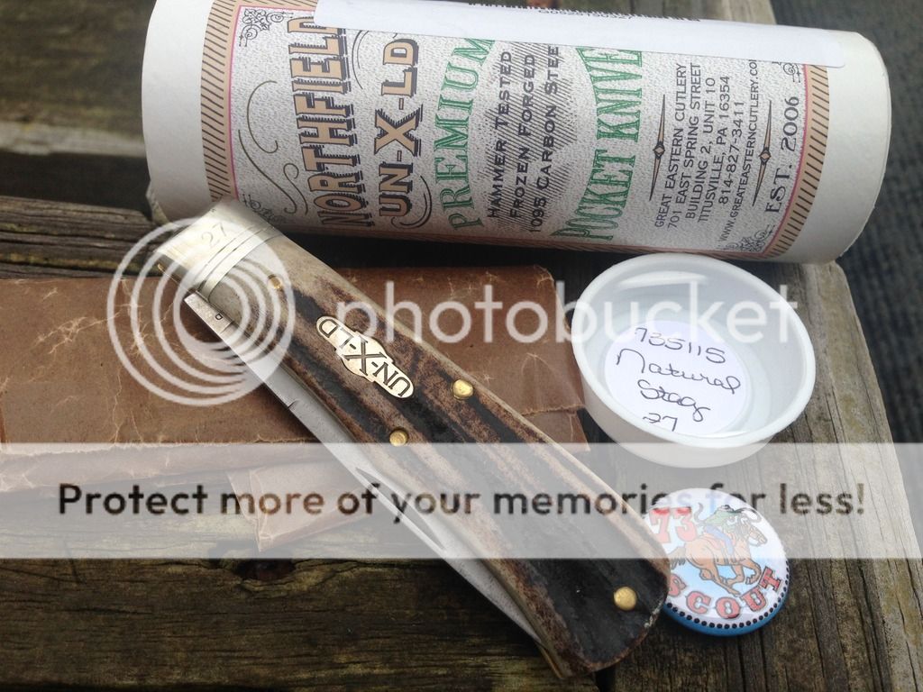 First up is my carried, used and sharpened GEC Northfield #73 Scout - Natural Stag - Serial # 27 - Sold