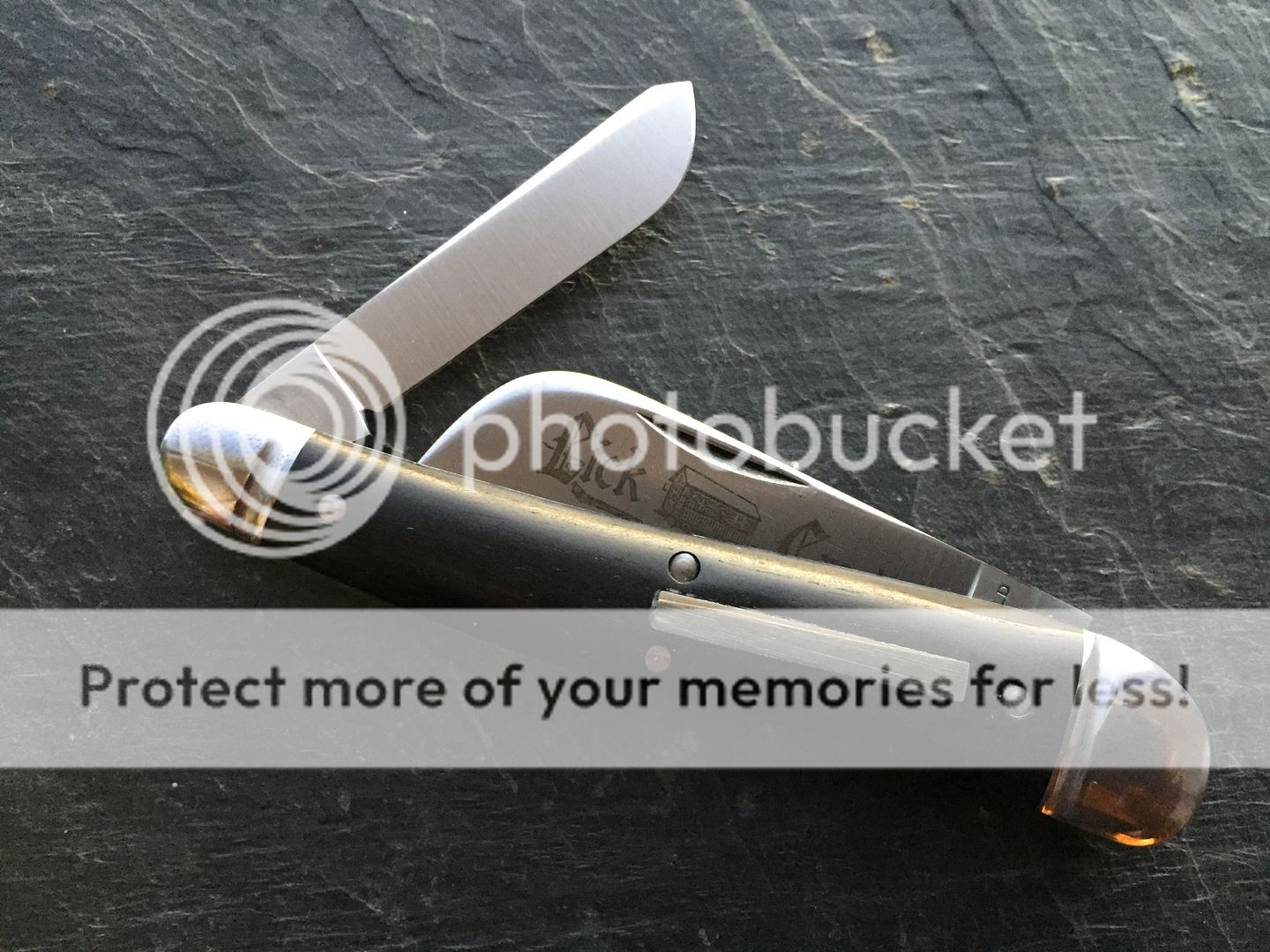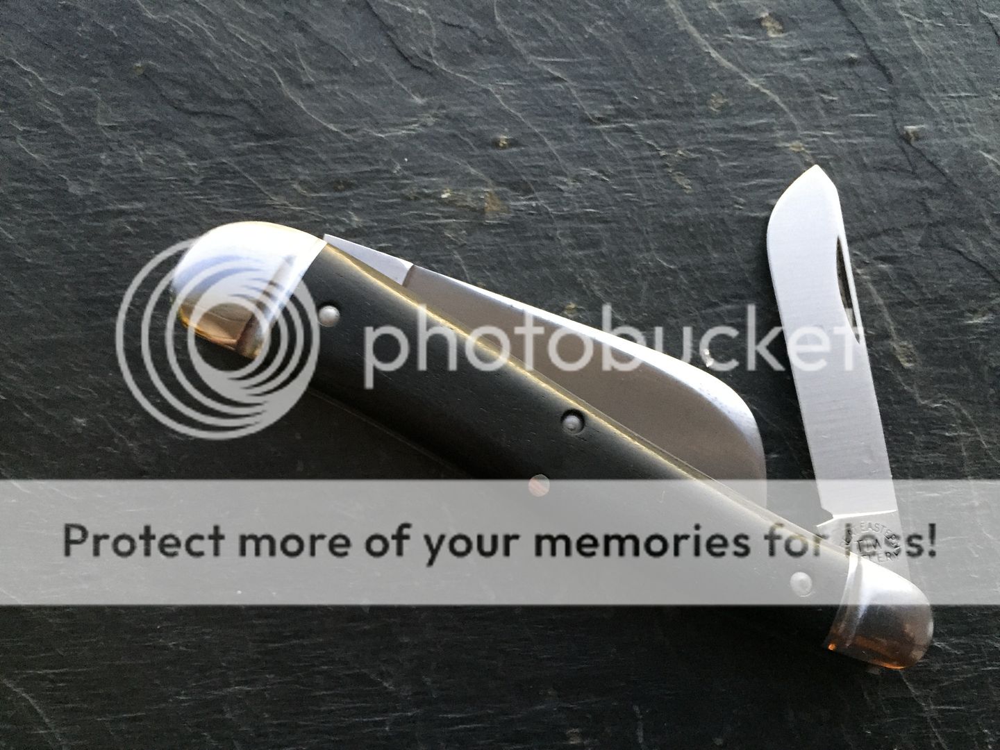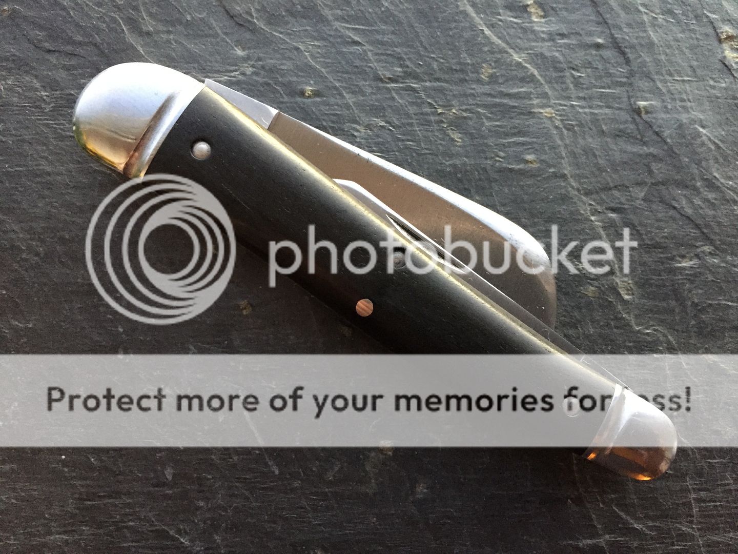 It has the original factory edges and etch - no patina at all. Comes with original tube. It has some peppering on the steel bolsters which I have tried to capture in the photos;
