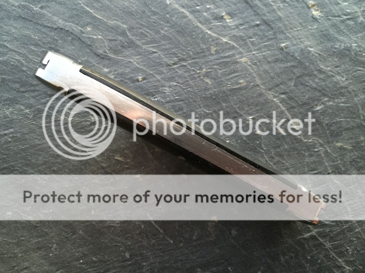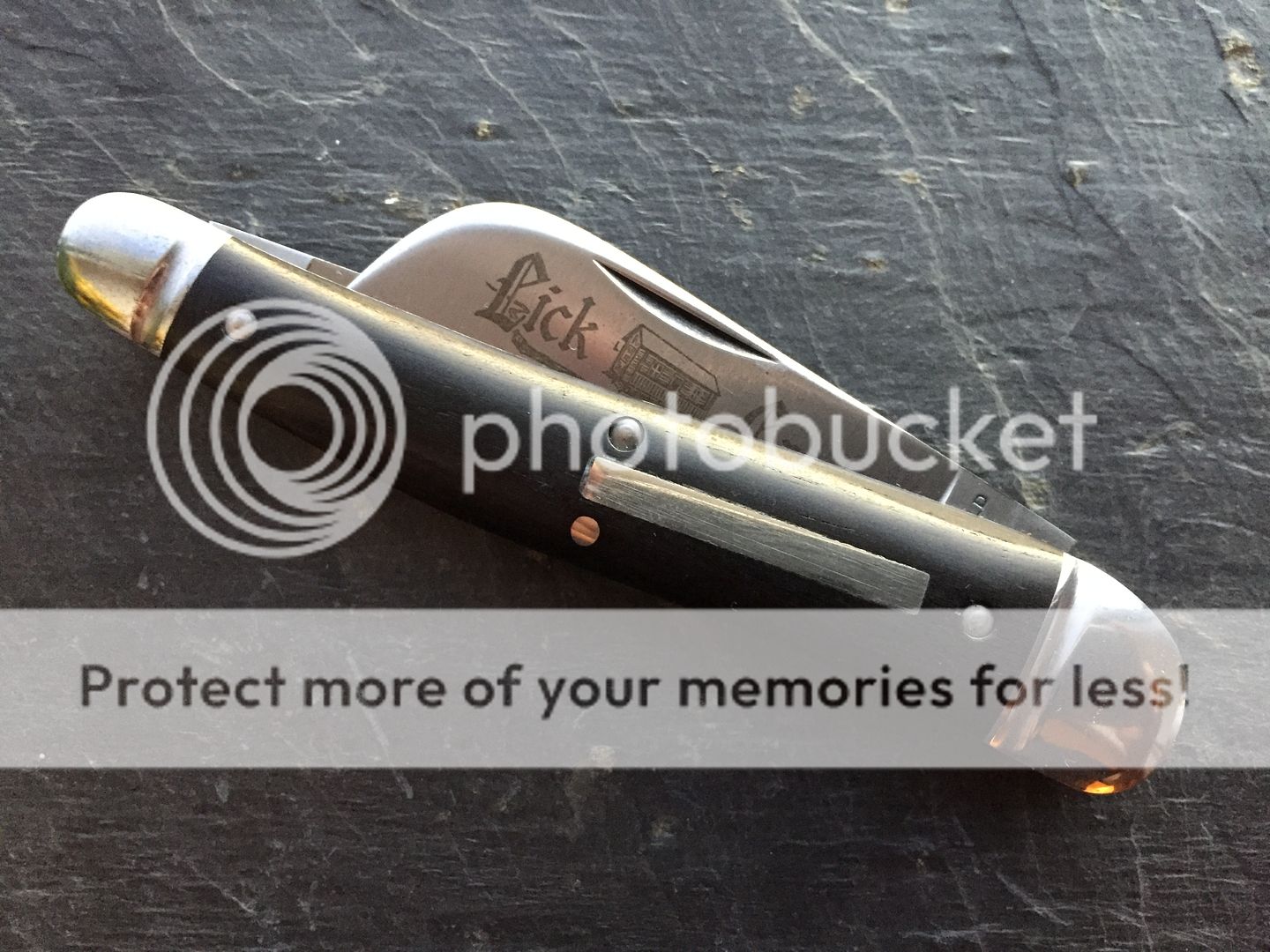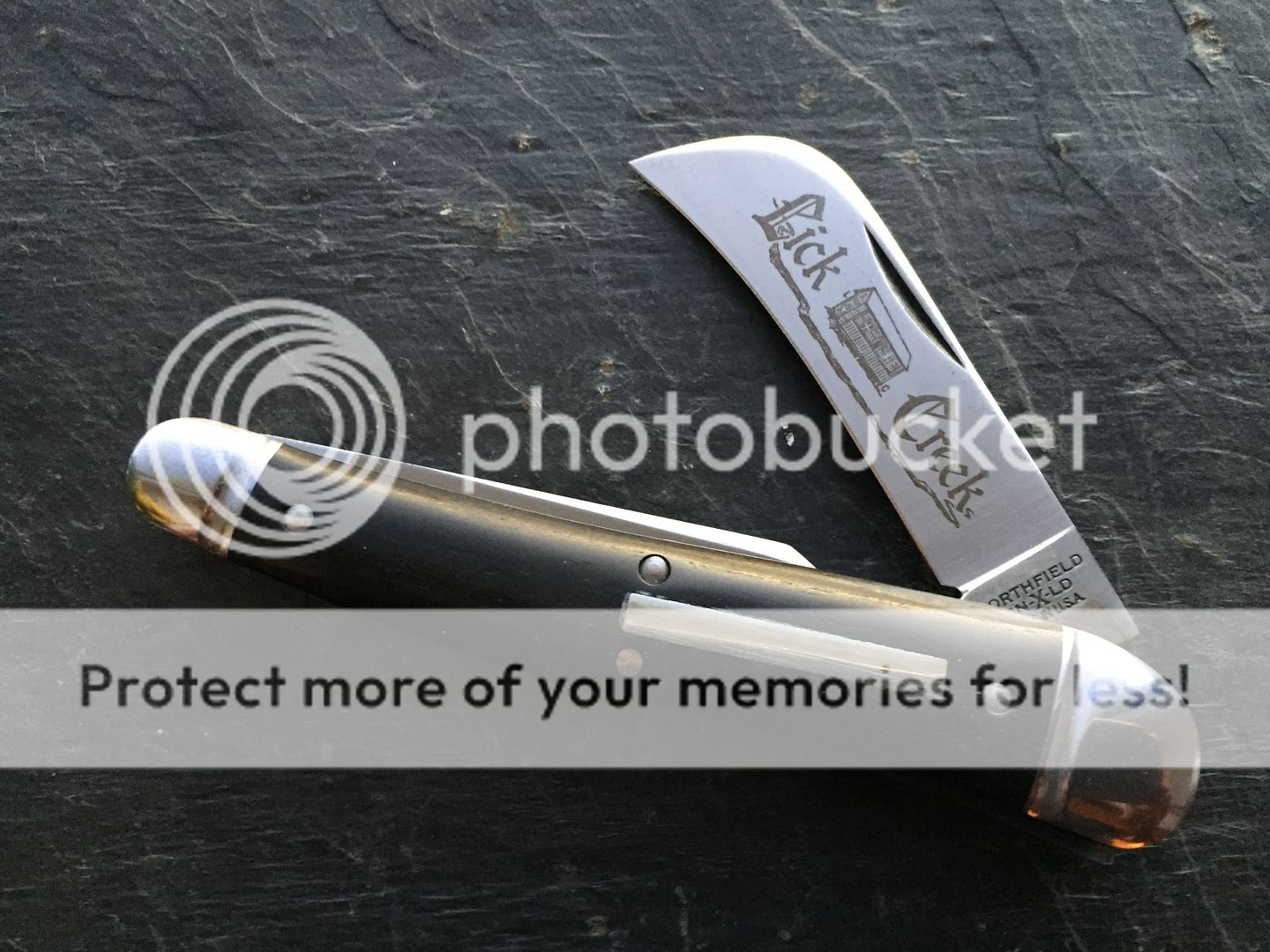 It has the original factory edges and etch - no patina at all. Comes with original tube. It has some peppering on the steel bolsters which I have tried to capture in the photos;