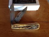 Northfield Dogleg Trapper with cococolo covers. #488210 This one is #11 out of 25. Has been carried one or twice and has only cut a couple of steaks. Has some small spots of black surface rust near the tang of the clip blade that could be Flitzed off. Comes with tube. Asking $70 NOW $65