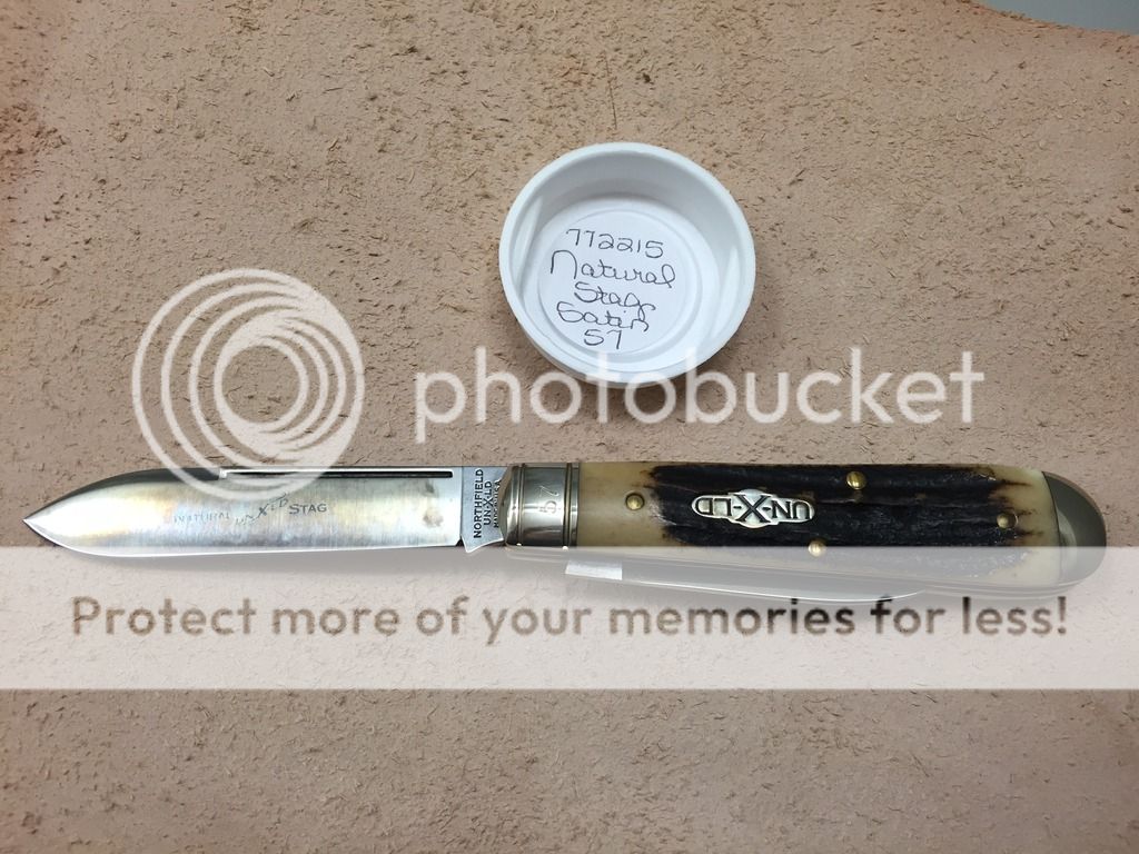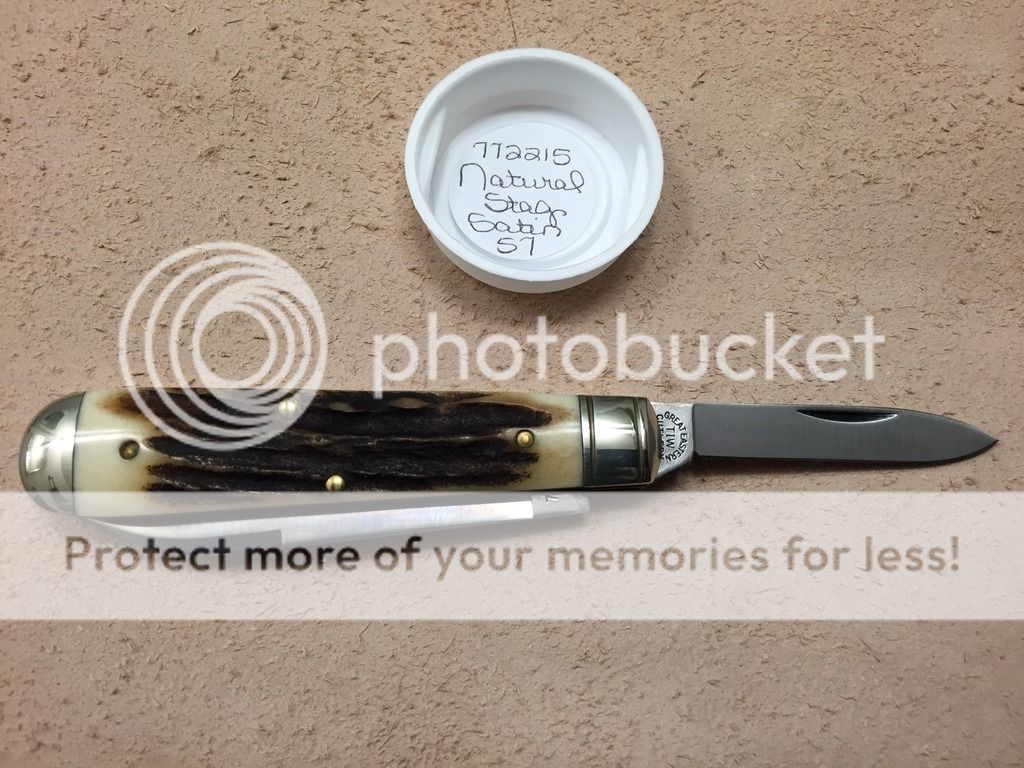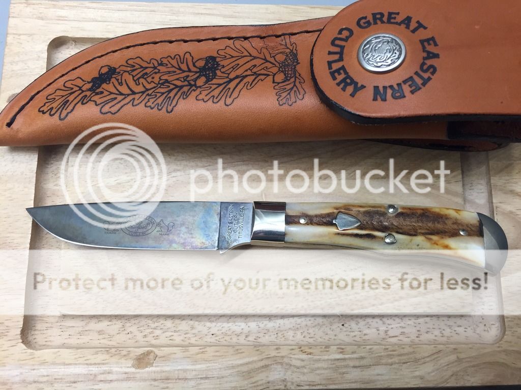 First up is a GEC 77 in natural stag. This knife has been used, and has a patina. It has great matching thin stag scales. The original tube is included.