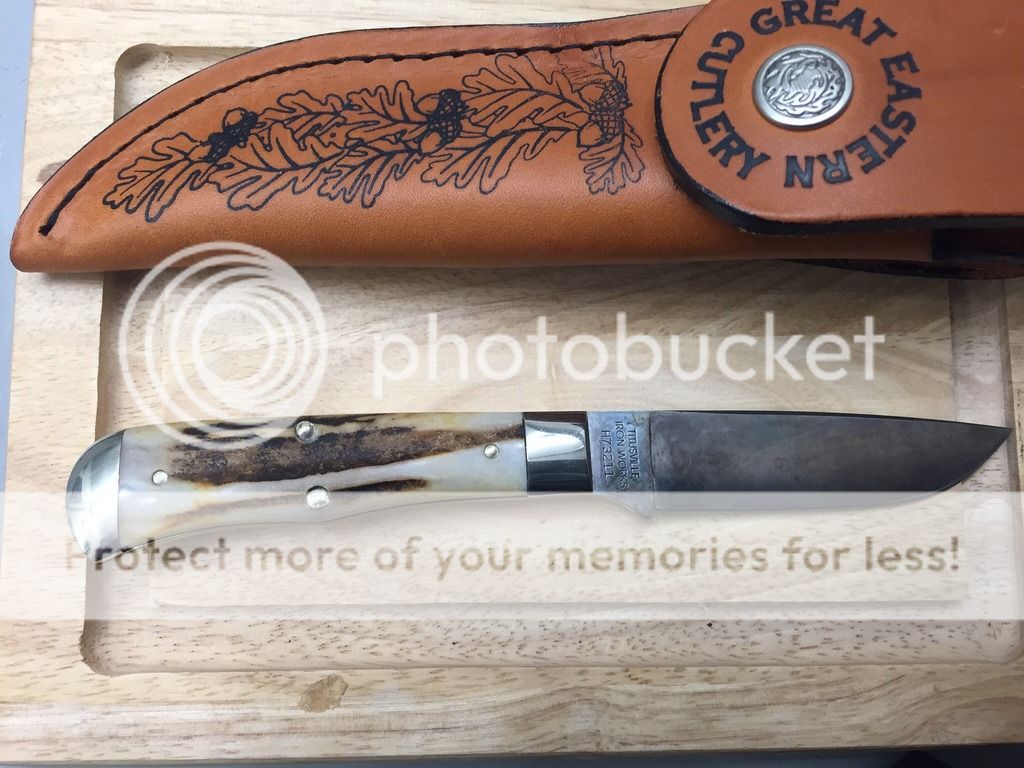 Next up is a GEC h73 fixed blade in burnt stag. This knife has also been used and shows a patina. Even matched stag. This one includes original tube and sheath.