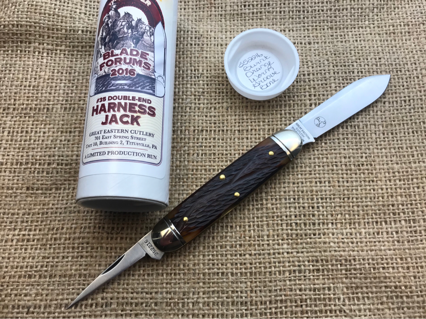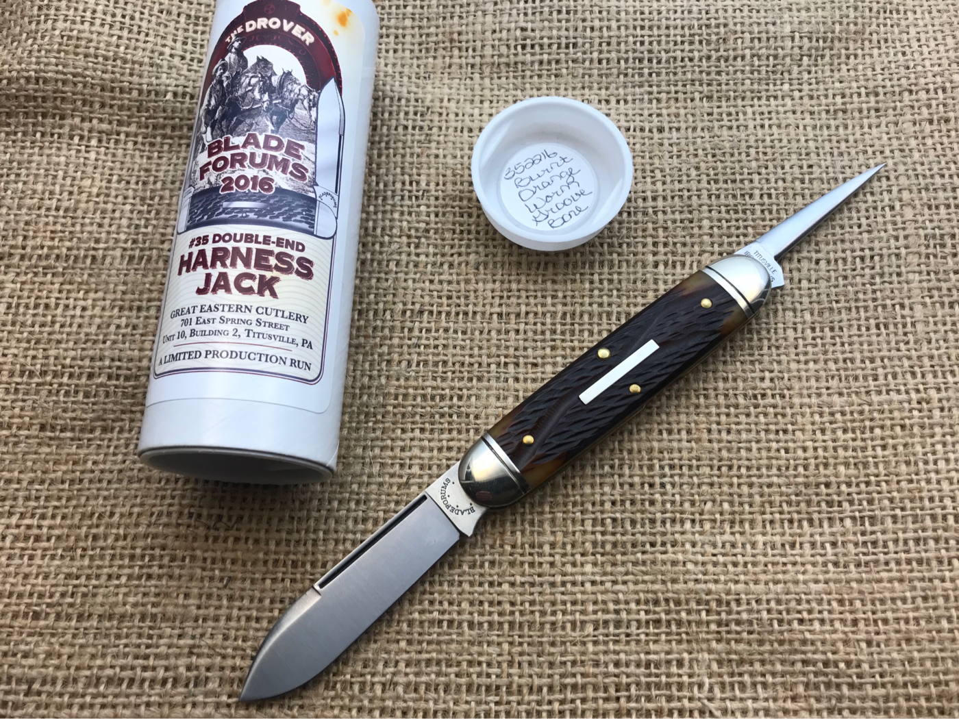 1) #35 2016 Bladeforums Knife with Burnt Orange Worm Groove Bone $SOLD