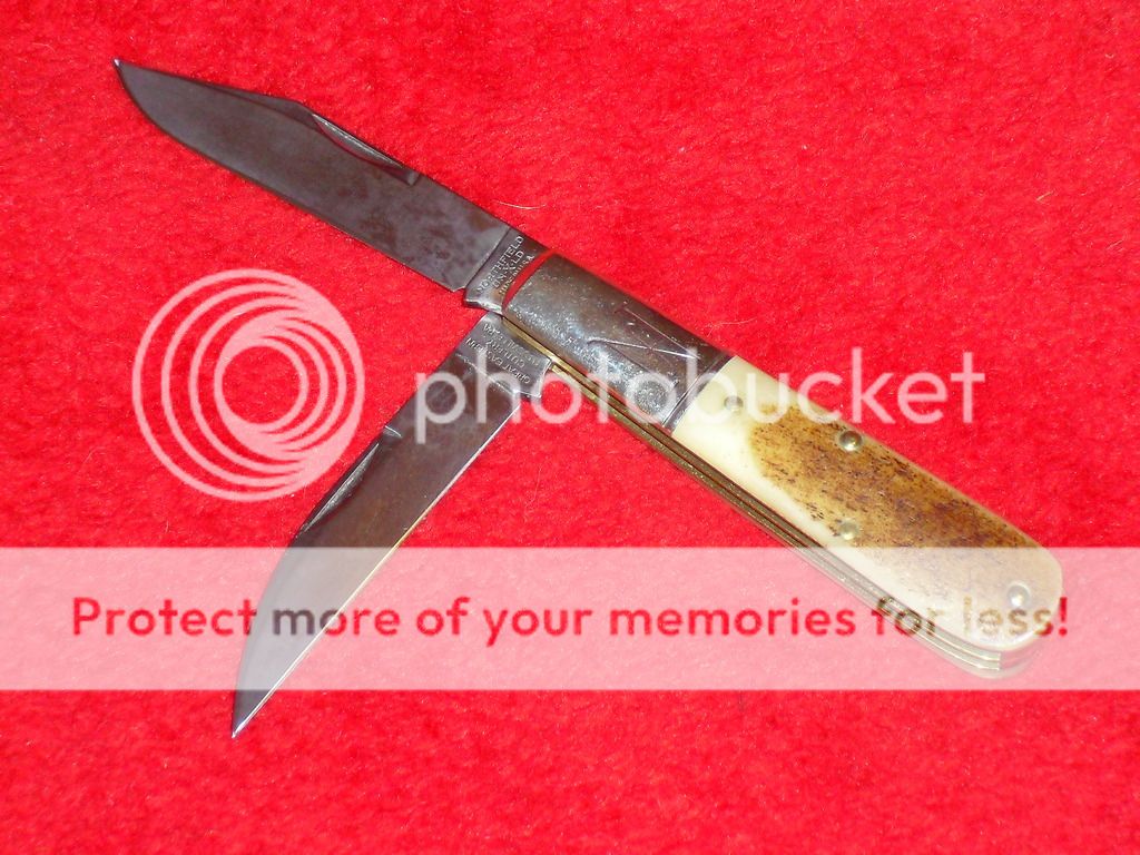 Northfield #771214 Barlow, $130. SFO (for collectorknives.net?) Carried & used, still in great shape. Patina starting on the blades. Primitive bone scales.