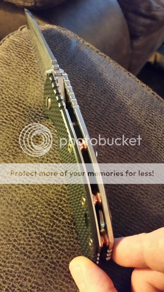 Hi there, times are tough and I need to sell a few knives to make ends meet. Selling my gen 3 spanto with bronze Ti hardware and copper standoffs and lbs. Black g-10. Knife has been used and sharpened but it's still in great shape. It doesn't have the stronger detent that the gen 4s have but It's not bad for a gen 3.