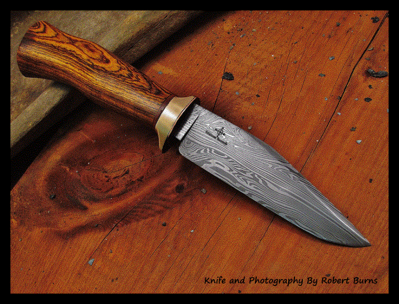 This project was one I had not intended on doing, but in between other projects over the last two days it came together. The blade I forged from a scrap off of a viking sword I am working on and the bronze and copper are also scraps from other projects, the handle is bocote. This blade is only about six inches long and slightly less then 1 1/4 inch wide, slender, and sharp; now, it just needs a good pair of pants before being a true "gentleman's" bowie. All comments are welcome and thank you for looking.