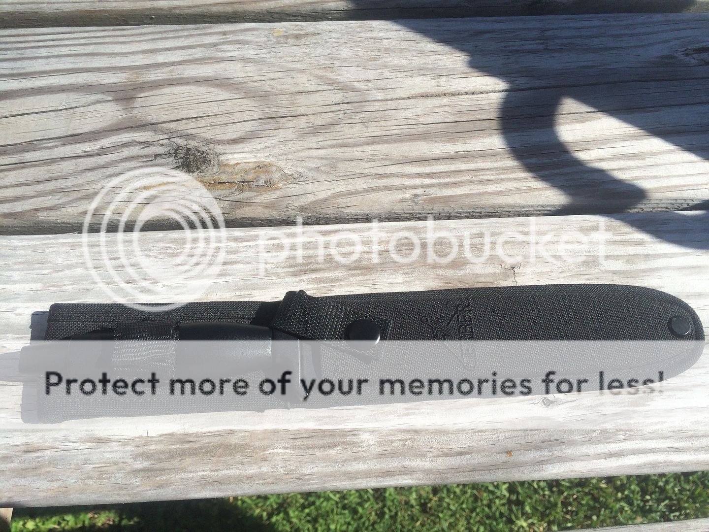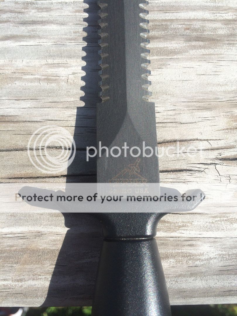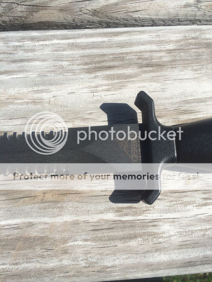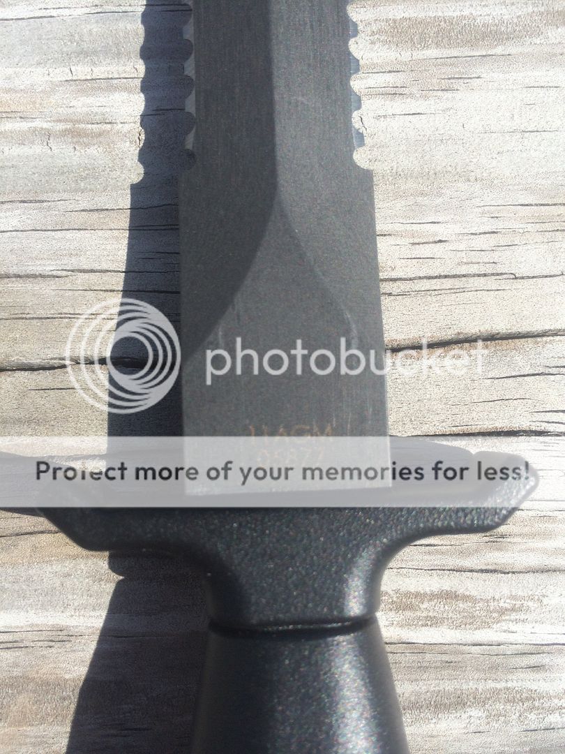 I have a like new (no box) Gerber MKII double edged, double serrated fixed blade knife. The knife comes with the factory sheath. The knife has never been carried or used, but the blade coating does show signs of being sheathed, i.e. wear marks/lines from being taken in and out of the sheath. I tried to capture these in the pictures but they didn't show up too well. Not a whole lot to say here, you can see from the pictures what this knife is and what it was intended to do, just not my style. From what I can gather, based on the date code, this knife was manufactured sometime in 2011 if anyone is interested.