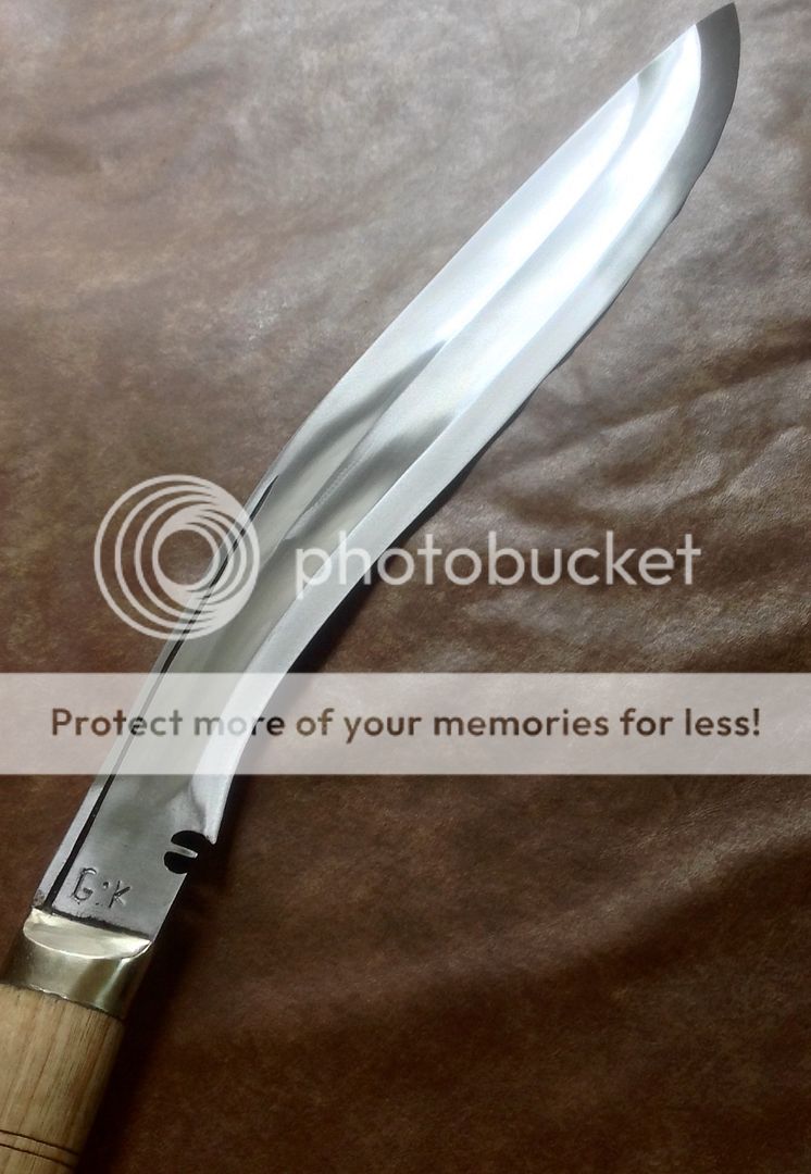 Today I have up for sale is GKs Kunwar Khukuri. This model was inspired from original museum model Balbhadra Kunwar Khukuri. Extremely well made fro Tata truck spring. Natural color wooden handle, I didnt polish or stain the handle. Beautiful double fuller. You wont be dissapointed with this knife. I had Golte made scabbard for this Khukuri. Its light weight compared to its size.
