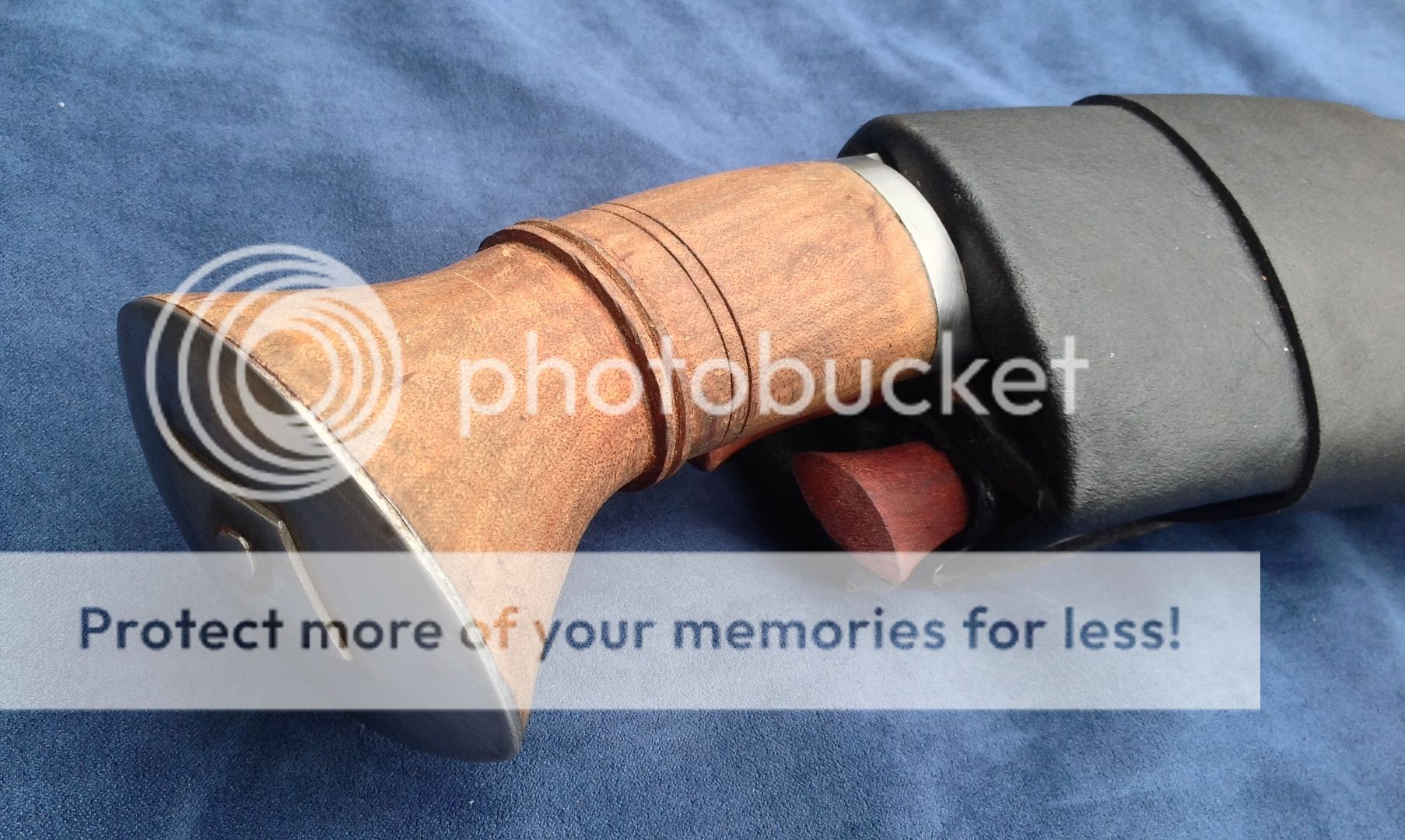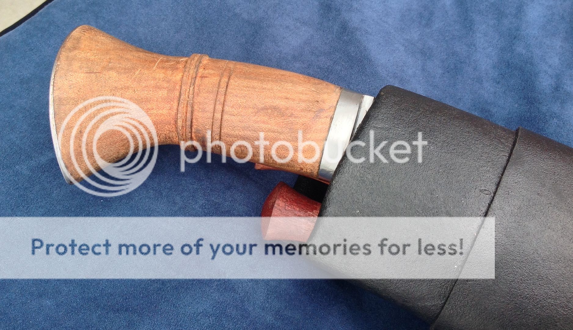 Today I have up for sale is Villager Style and Finish Beer Belly Khukuri. This khukuri has a wide belly. Very Beautiful. Made with 5160 TATA truck spring. Basic Leather sheath. Although this khukuri is Heavy, It is Balanced perfectly, you wont even feel that this khukuri weighs 41 ounces.
