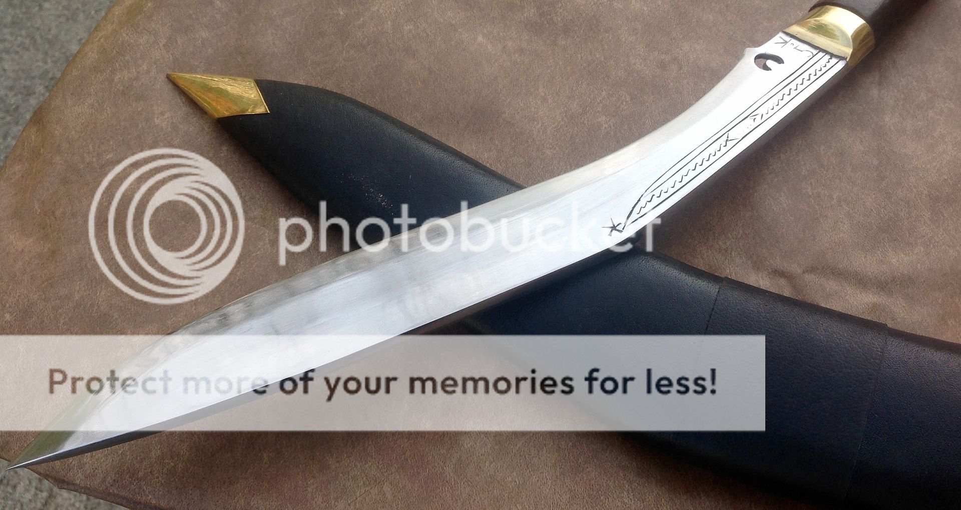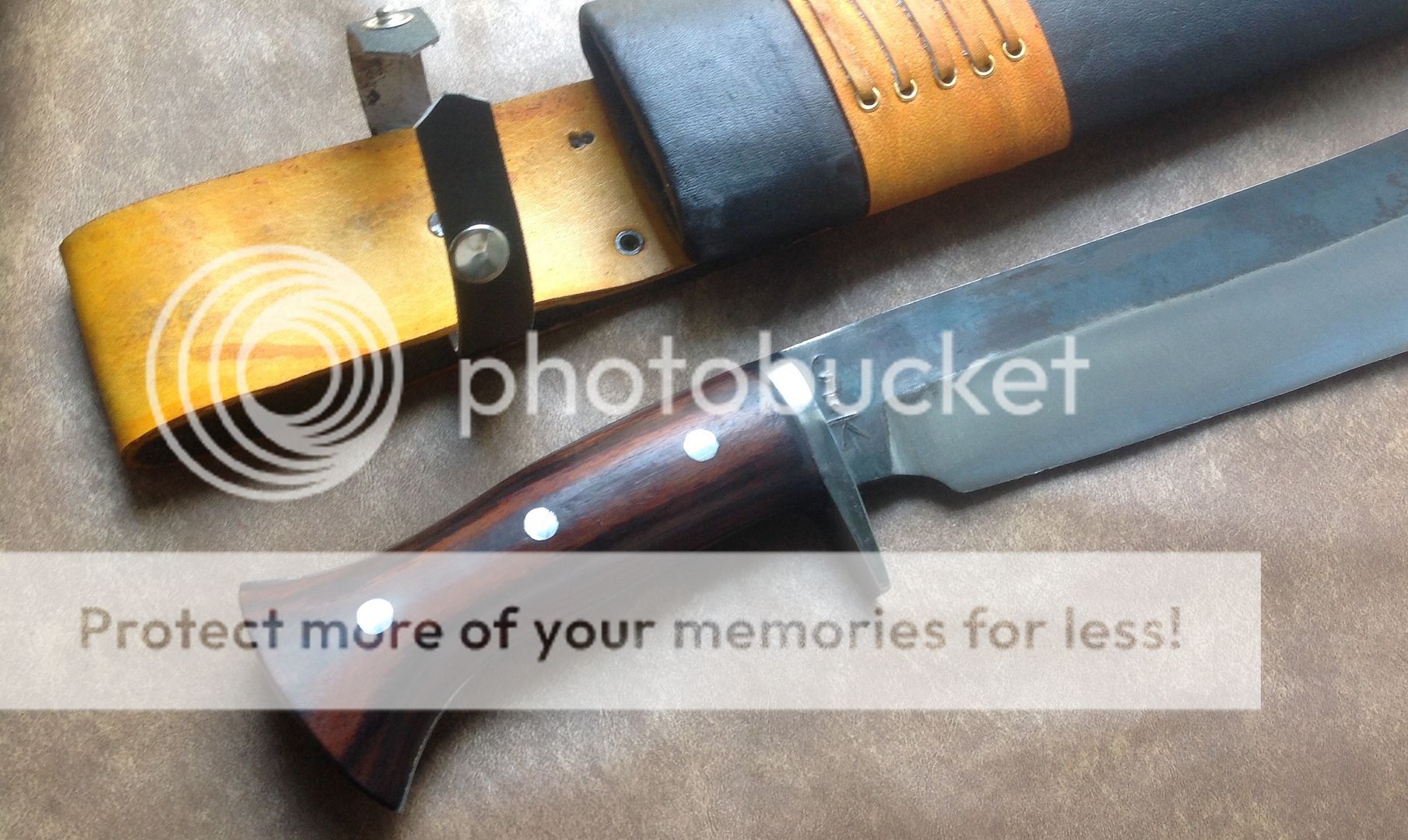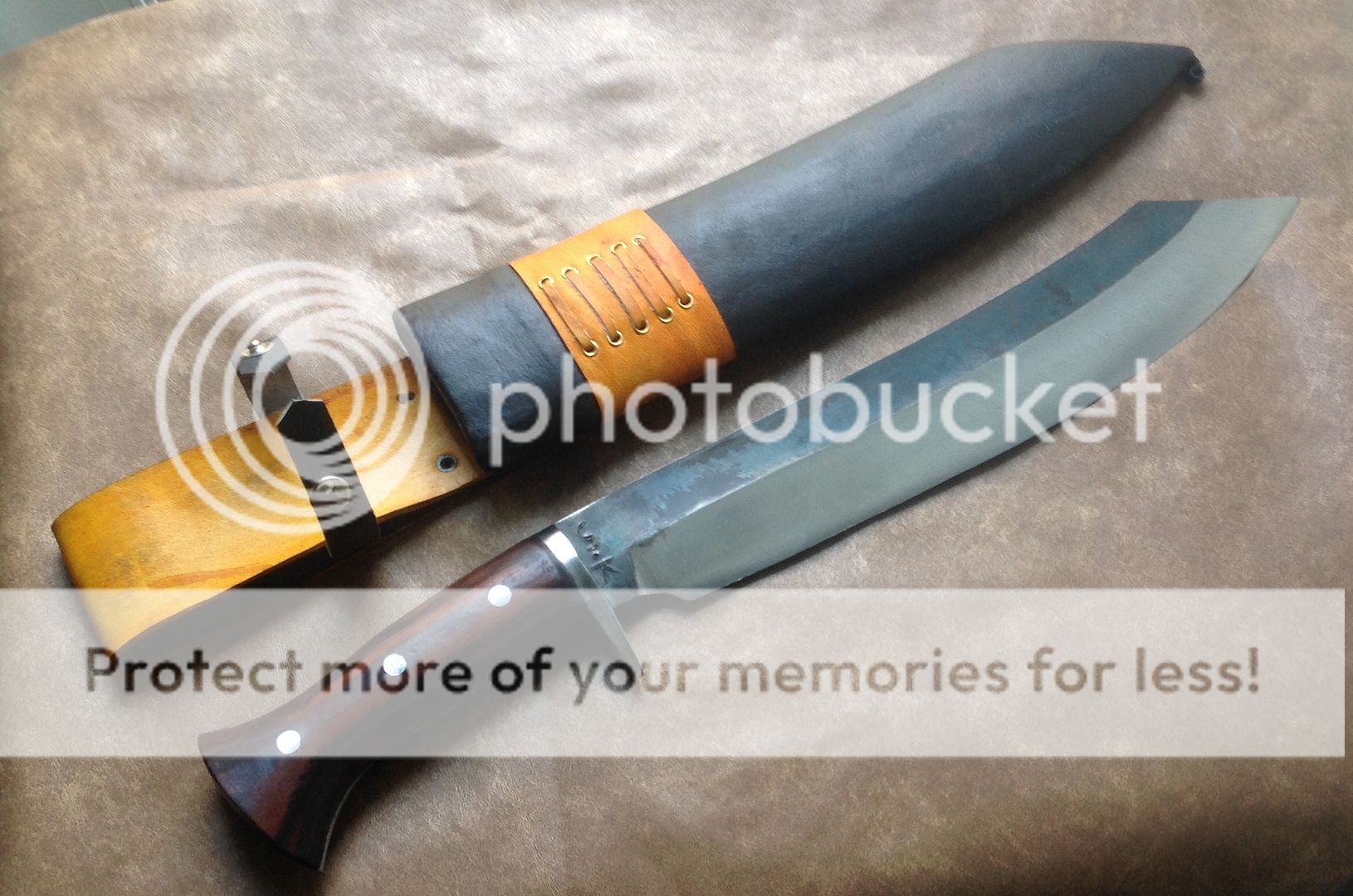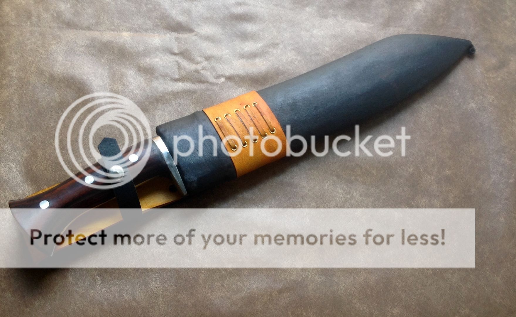 This makes an excellent camping, Bushcrafting, light batoning and self defense on wilderness. Sharp and ready for action. I have left the forging marks on top. Looks very beautiful. Pictures don't do justice for this knife. I had Golte Sarke make Premium Leather covered wooden scabbard made for this Knife. Handle is made from wood and is.4.8 inches long. Full tang and Satisal wood handle.