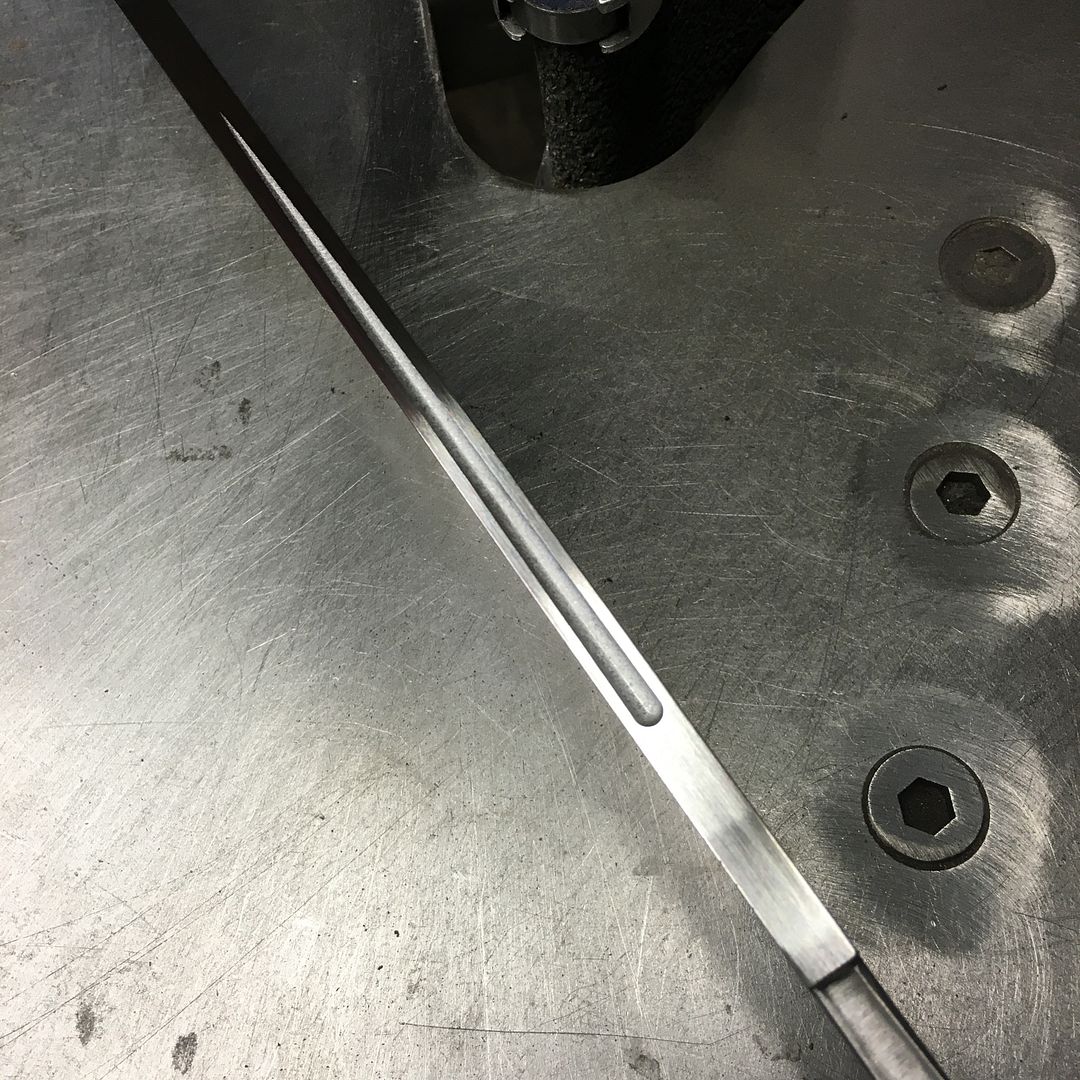 My signature tapered fuller on the spine. This is a feature that I put on most of my large Japanese style fixed blades.