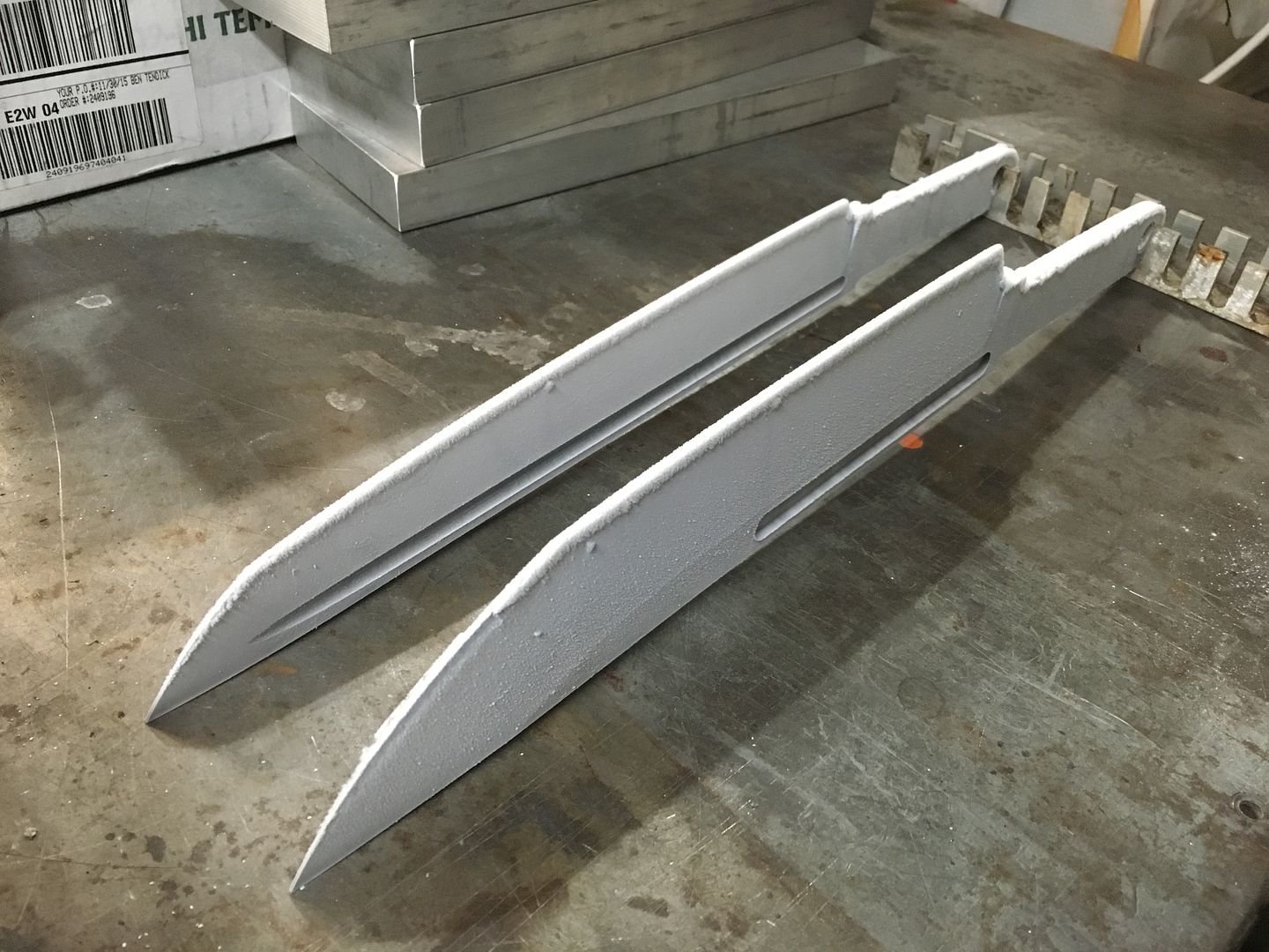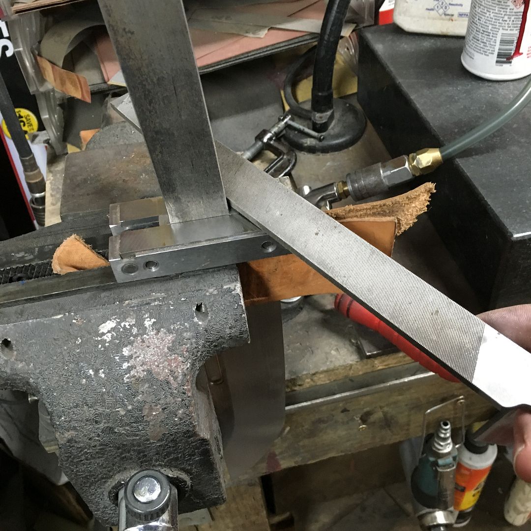 For extra weight reduction and better balance, I went with a flat bottom radius-ed fuller. Manual mill, no power feed. Lots of cranking.