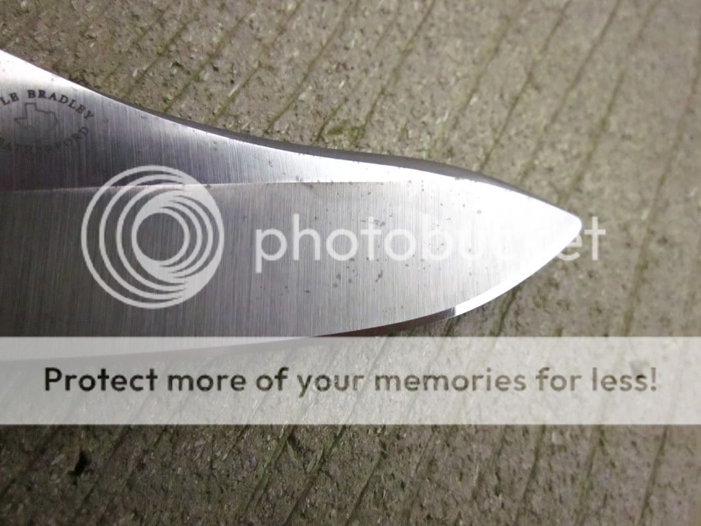 First up is the Gayle bradley. I haven't used this guy much but have cut some food with it so it has a bit 'o patina and some spots here and there (It's not red rust, just some spots) The GB opens crazy smooth and locks up solid. Lockup is around 40-50 percent and hasn't moved since I got it and you don't really have to worry about it wearing since it's steel on steel. I recently sharpened it up to 25 degrees inclusive IIRC so it's nice and sharp and ready to go. This is the newest version with the skeletonized liners. I have the box as well.