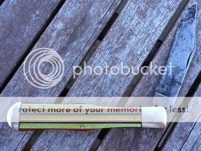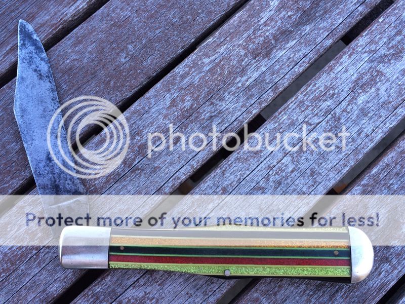 PAL Cutlery Co. Made in USA (1945-1953), scout knife with jigged delrin covers, probably made by Remington. This one looks like it was probably sharpened then stuck in a drawer for the next 60 years. The condition is darn good for its age, though it could use a little cleaning.
