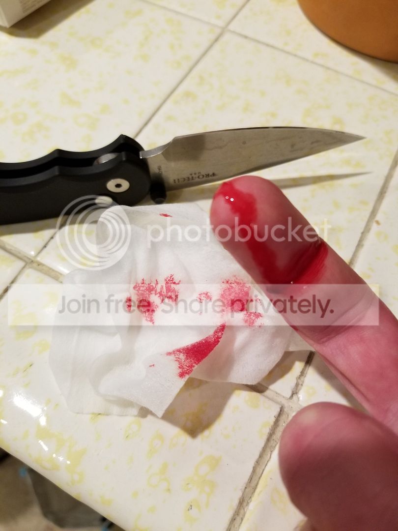 Actually it's not. Actual non doctored photo of the polished edge. Caught it on burst mode of light coming just right through my blinds. I never felt this cut.That's a straight up anime glint off the edge in the last photo. Glad the cut was minor, a careless slice can easily put your finger out of commission for weeks.