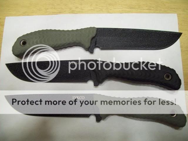 Tom; pic showing one black handled knife and two others- to me them others look like green handled knives, or is that just due to the light?