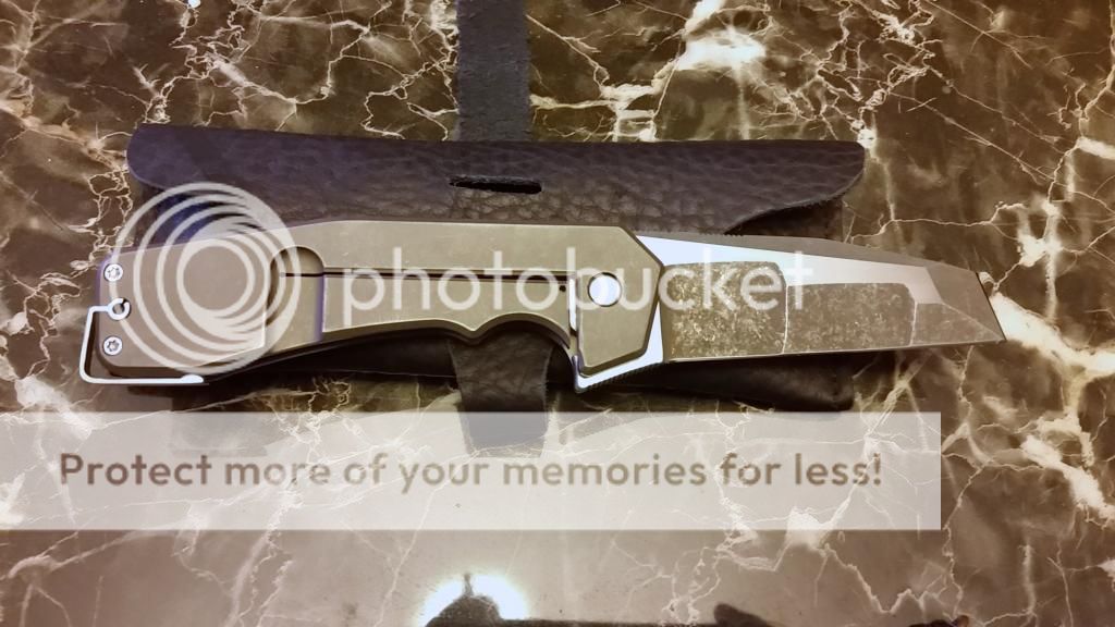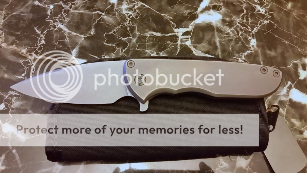 3) Ferrum Forge Custom Phantom Flipper. Great EDC knife. Has been carried some, but used very little. Has a bluish/bronze ano frame and 3.5" S125V Blade. Has a light scratch on the show side and some scratches on the pocket clip which you can see in the pics.