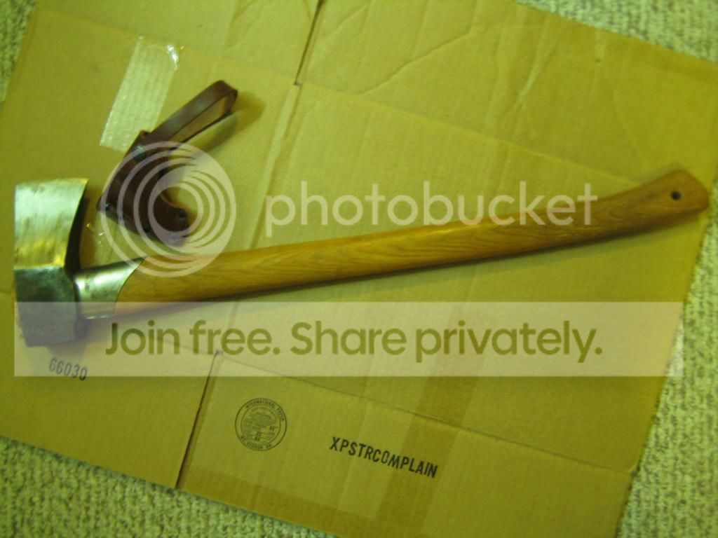 Gransfors large splitting axe, since I got the GB maul this hasn't seen much use, usually only when there is another person splitting with me. The axe has been used, there is marking on the head and guard, and one dent in the handle guard. Axe has been sharpened and is still reasonably sharp but could use a touch up, the head is very tight, no wiggle, overall the axe is in great shape. Axe was used exclusively on red and white oak, it's all I burn. I am very tall and the longer handle on the maul is much more comfortable for me. Price $115.00 shipped SOLD SOLD to Swoopmaster My apologies for the dark photos, I am starting to realize I will never be a good photographer.