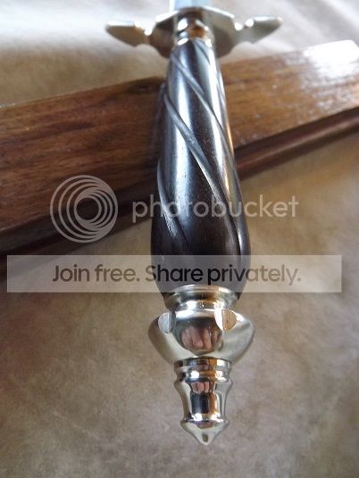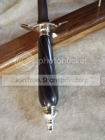 Thickness at the guard is approx. 1/4". Fluted African Blackwood handle, Mirror polished Nickel silver