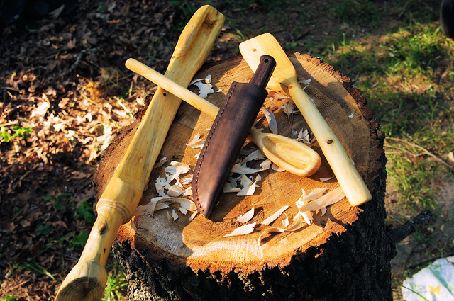 In fact I enjoyed myself so much that I then decided to make a spatula and an Atlatl (afterwards) using nothing but my Gray Wolf knife (and some sandpaper). I did end up carving the bowl (of the spoon) out with a crooked knife since I couldnt figure out how to carve it with my Gray Wolf knife.