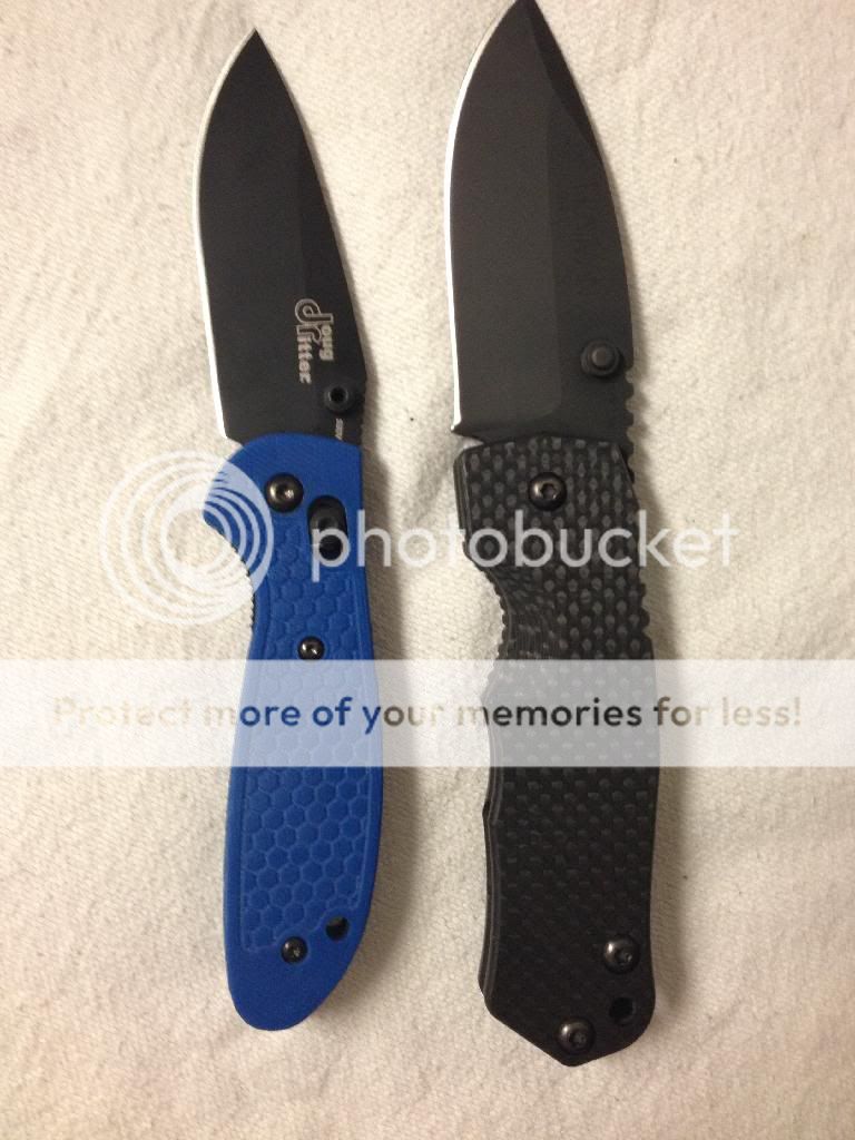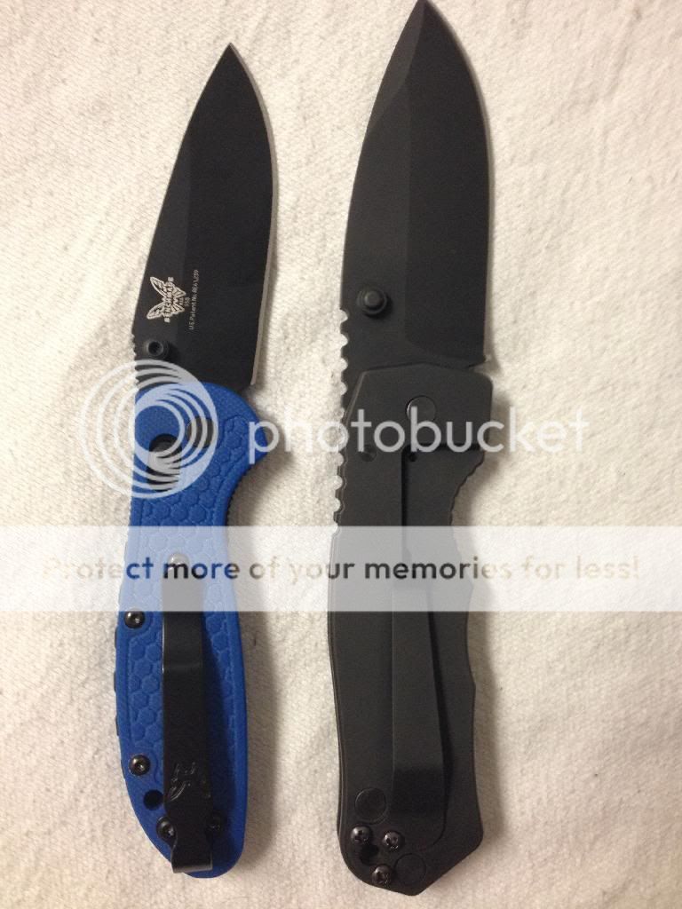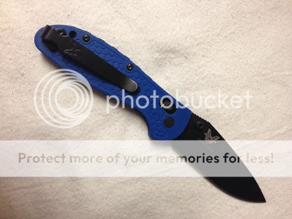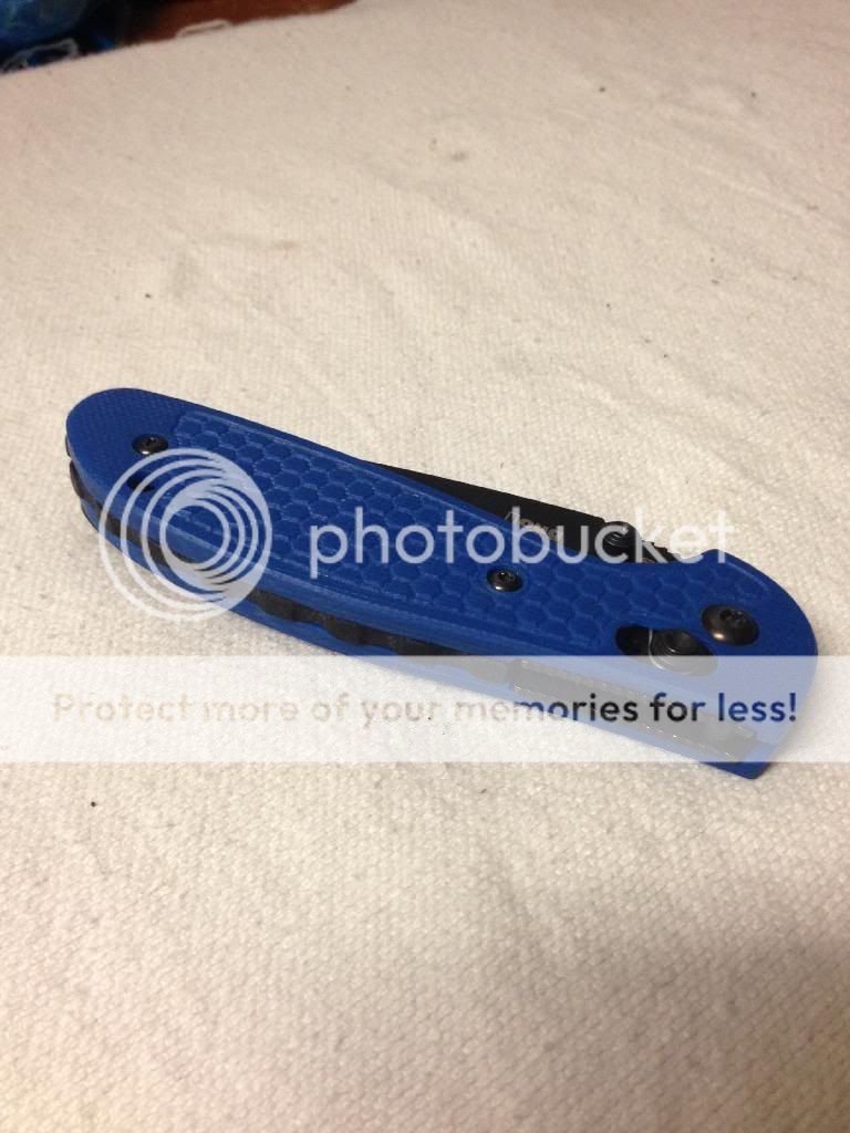 2- benchmade mini Ritter griptilian with blue g10 putman scales. Just got this knife today- unfortunately a few days ago I bought a microtech mini matrix and I just don't see this getting much pocket time. It's beautiful, solid lock up, super smooth (falls free when lock pulled), deep carry pocket clip, perfect centering. Scales were brand new before installing today, blade (and stock black scales- also included) appear to be new but may have been carried. Comes with box and baggie- I have $180 into this knife. Will sell for $155 net PayPal only.