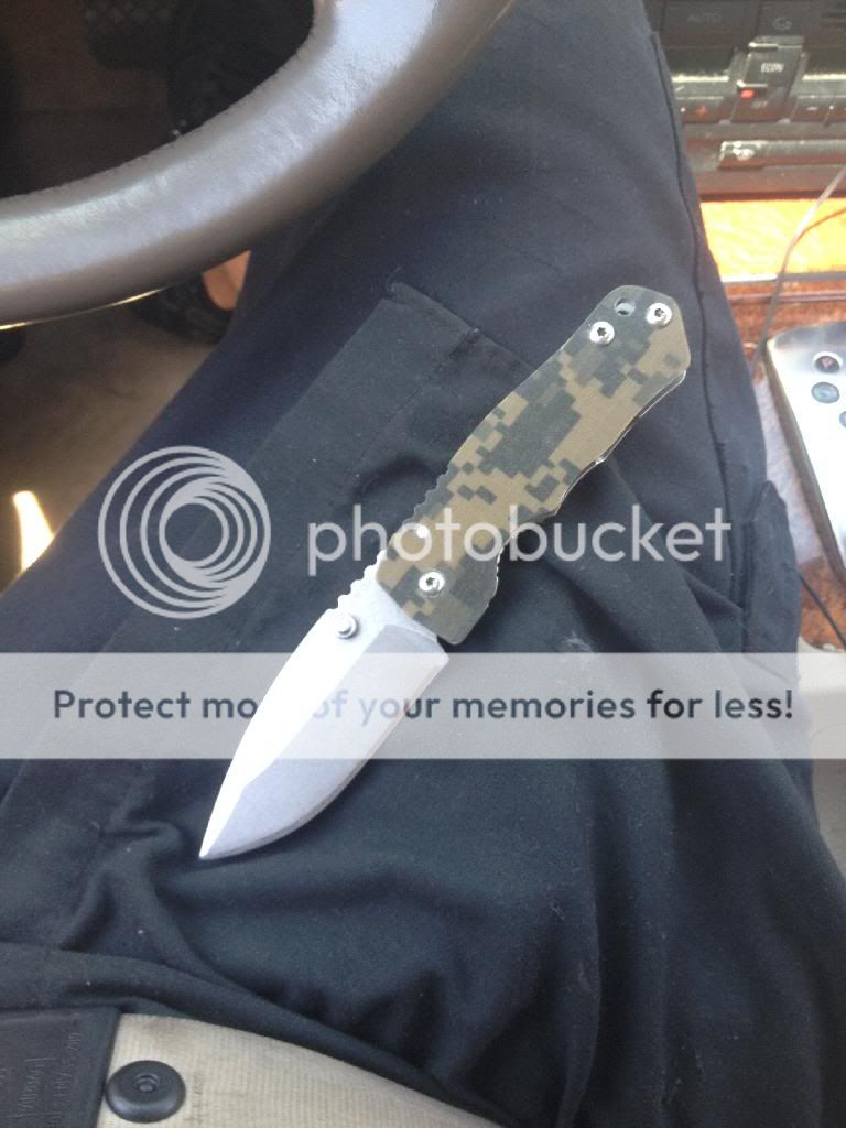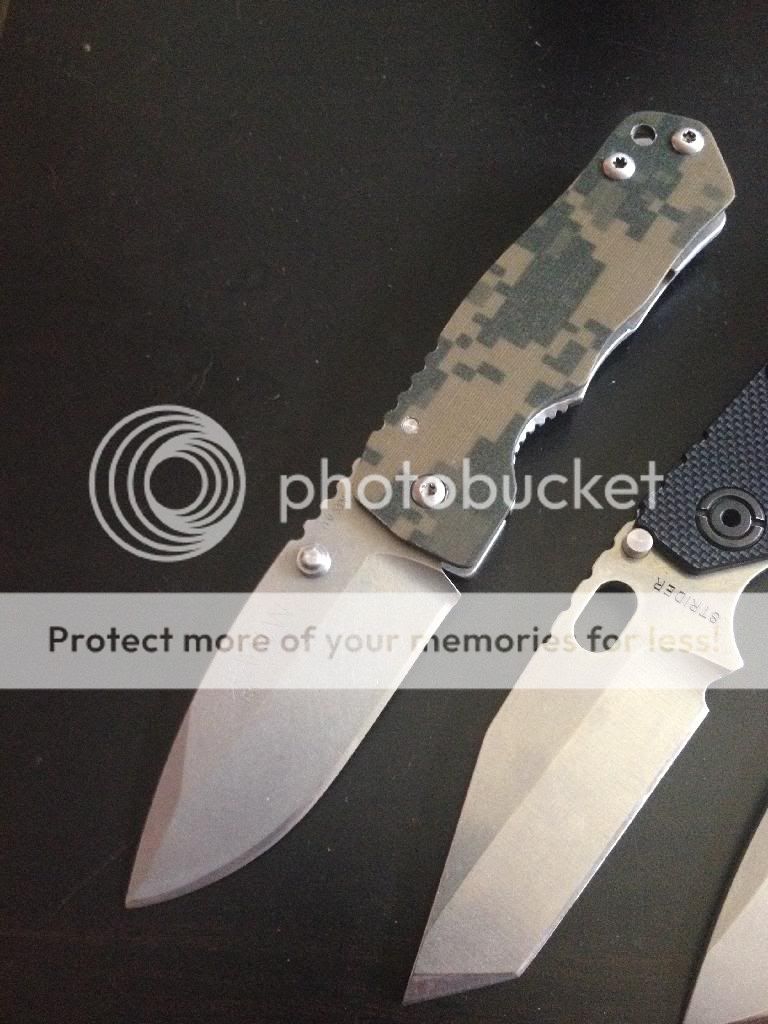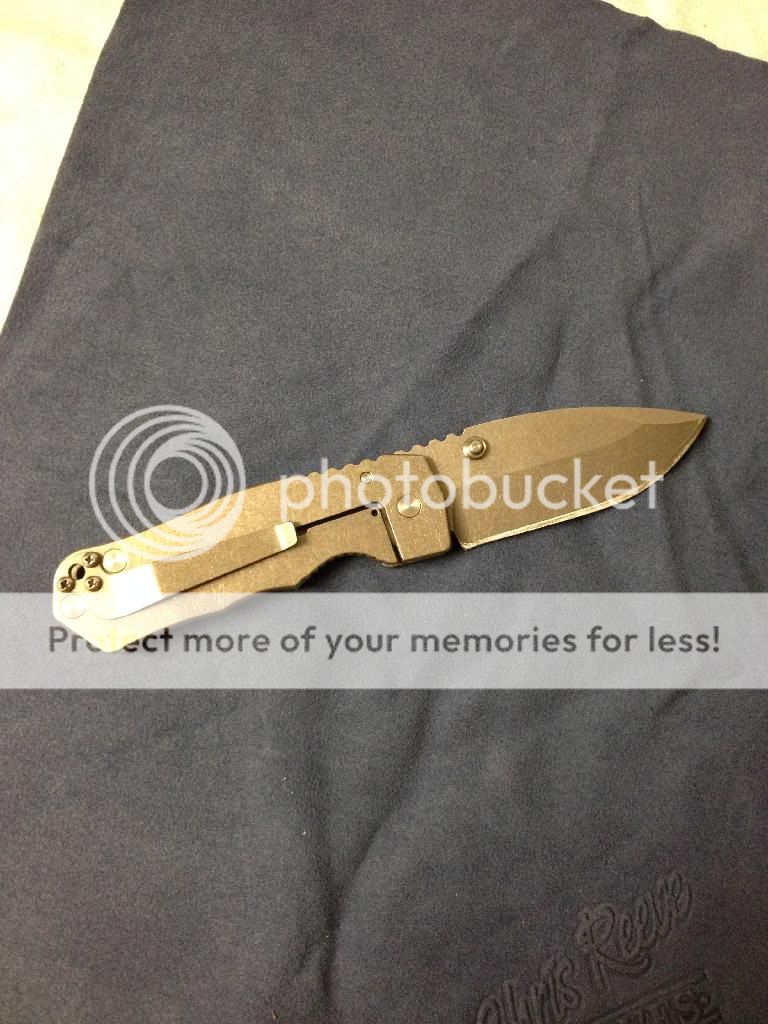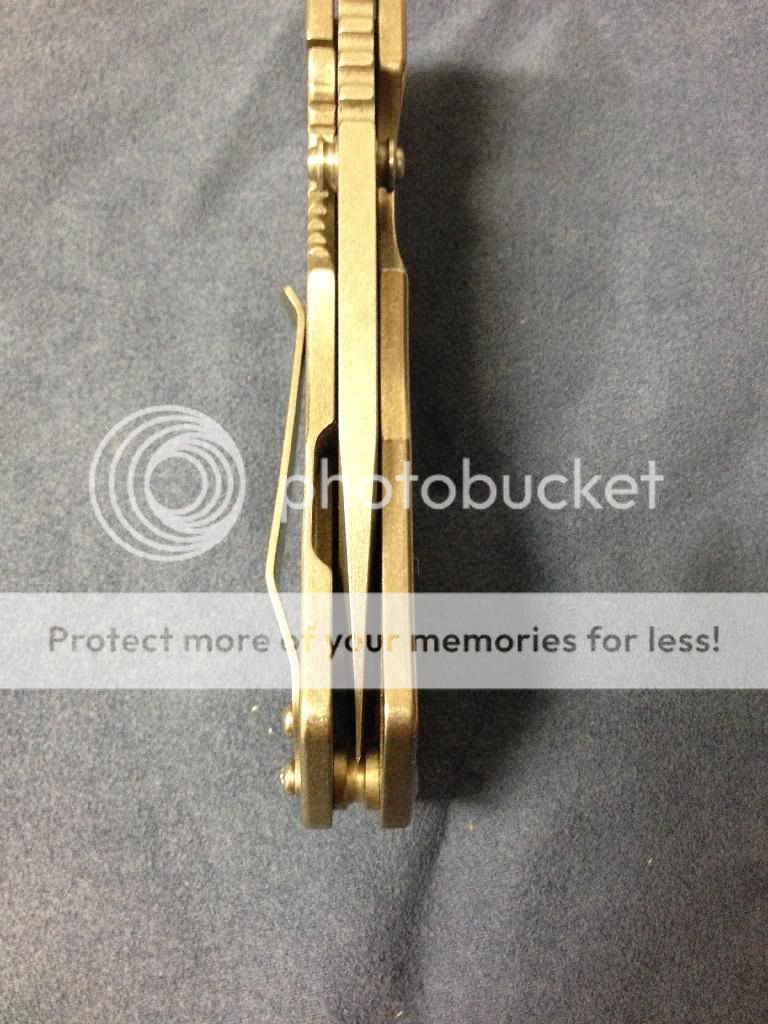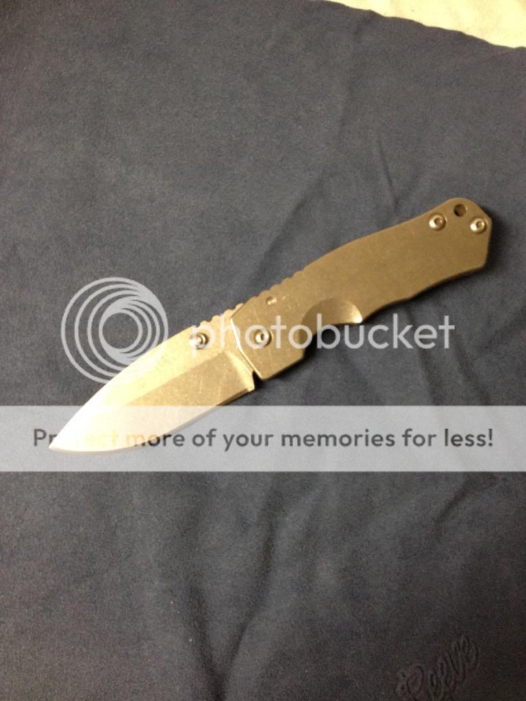 User all titanium stonewashed version. Made a digital camo scale for it as well that looks good but is not perfect (functions great) Good centering, lock up at 50%. There is a SLIGHT amount of blade rock and a VERY small amout of side to side play if you muscle on it- if you push the lock bar in slightly it goes away- it has a sebenza style bushing in the pivot so you may be able to rub it on some 2000 grit sandpaper and make it tighter- I saw a video on YouTube of a guy doing it. Never bothered because it doesn't bother me- doesn't effect te function of a knife and again like I said its a user. Yes it has been sharpened and comes very sharp. . No box- as they didn't come with one. When I made the scale I used the original titanium scale as a template so there is some sanding marks on the outer edge- could be taken out by sanding with a finer grit paper and re stonewashed , but didn't bother me as it's not really noticable and again it's a user just want full disclosure. If you're a collector keep searching if you actually USE your knives this ones for you