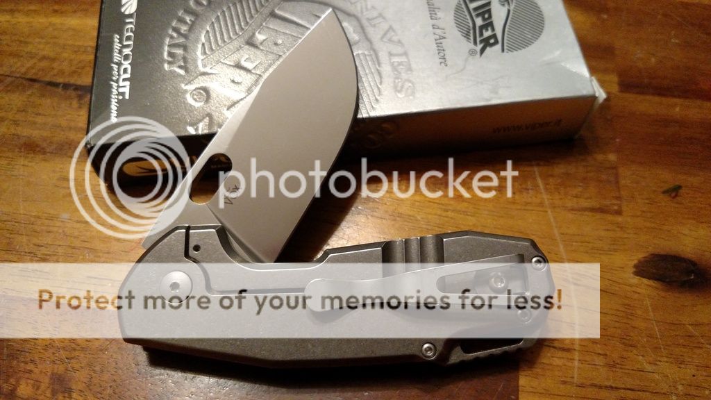 Next is a Viper Odino in full titanium and a satin blade. Overall excellent condition, only real signs of carry is the pocket clip and a few slight snailtrails in the titanium, which are easily hidden by the stonewash. Blade looks very clean, touched up on the sharpmaker. Action is smooth, lockup is rock solid with no lock stick. Comes in original box. Price is now $spf all in.
