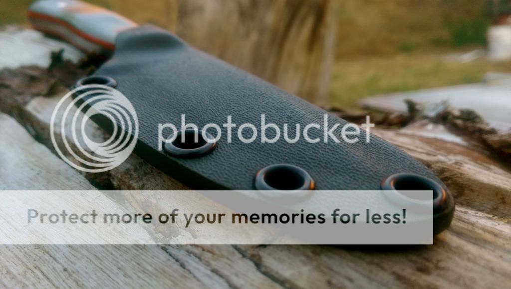 Comes with kydex sheath spaced for large tek lok (1.5 in spacing)