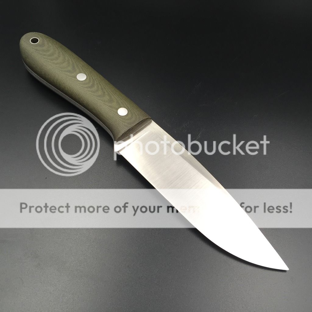 - flat ground blade, (belt finish to 220 then no abrasive cork polishing belt w/green compound)