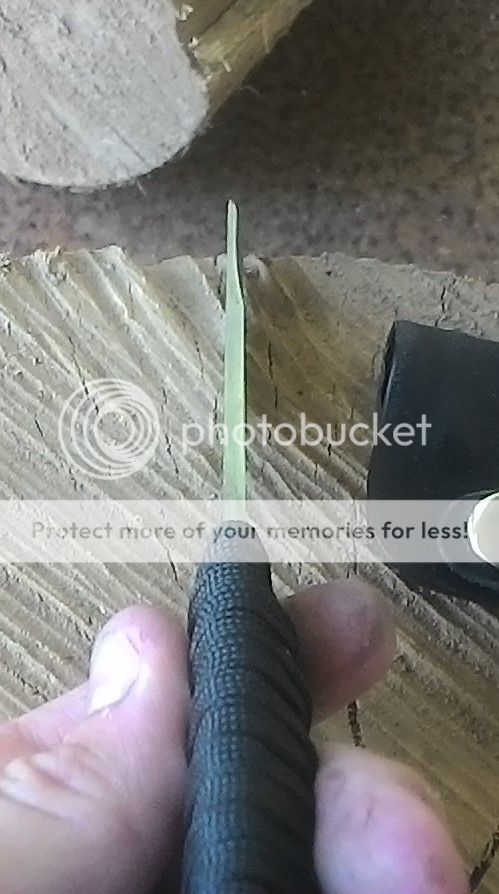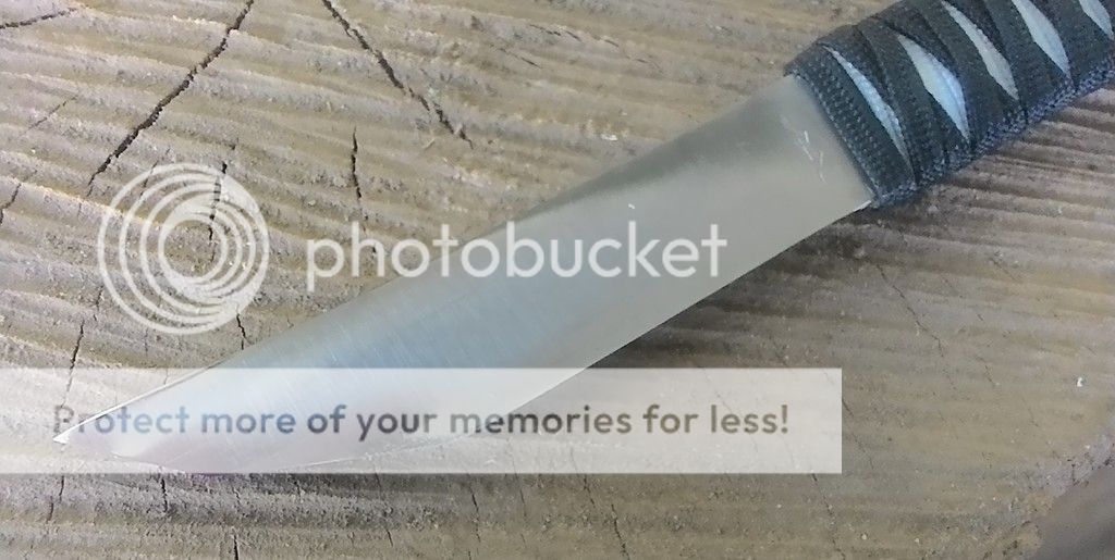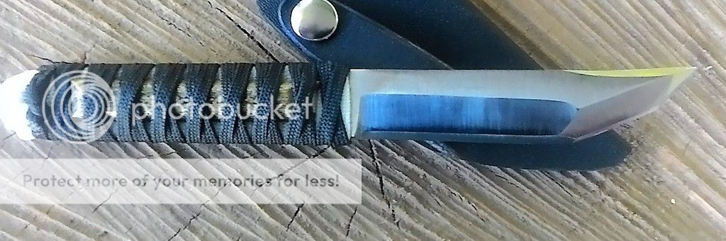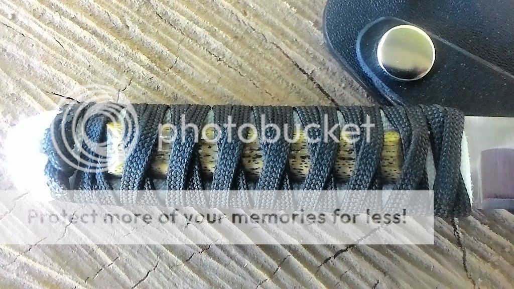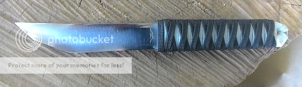 Handle: Black over with paracord with a bamboo menuki. The wrap was soaked in resin.