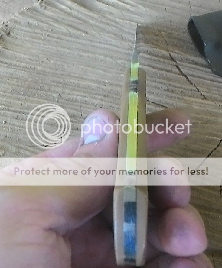 Up next is a EDC/Concealed Carry fixed blade made from AEB-L stainless. This is a nice smaller fixed and at a great price. The handle has a couple of gaps between the handle and blade that was filled with resin. The pictures make them look bigger than they are. Still a really great knife that is ready to be put to use. Stainless pins and a brass lanyard tube.