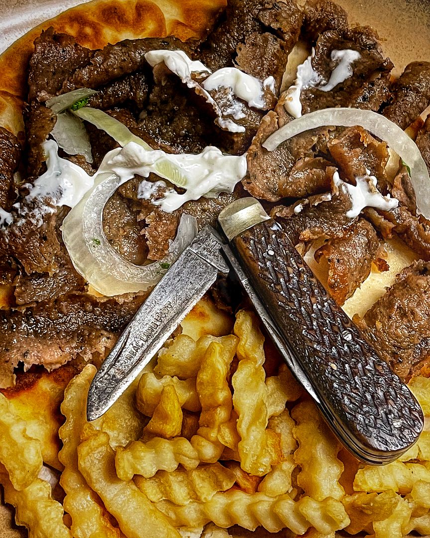 Thank you. It’s a mixture of seasoned lamb and beef, rolled into a pita sandwhich.Thanks Harvey, and I’m not even sure what that is but it looks delicious. Lamb gyro?