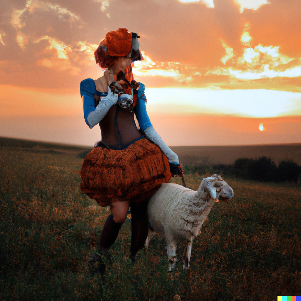 Prompt: Mary had a little lamb, sunset, steampunk style