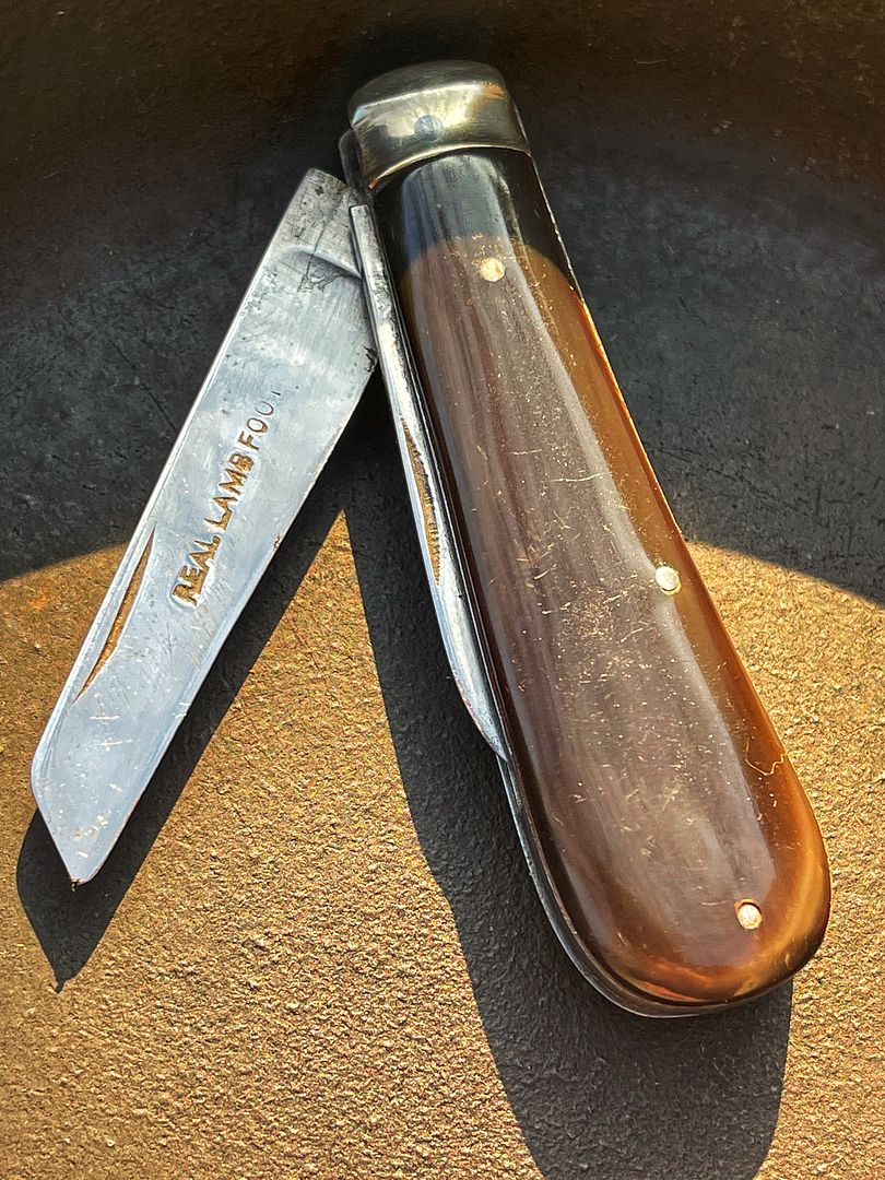 I tried to get the blade edges parallel…I was thinking of not getting shield and keeping more traditional and then thought I’d like a shield like the one on the pruner that is two pieces of metal and we went with this one. And the covers were going to be cocobolo that was jigged. He picked up some nice mammoth and we went with that.