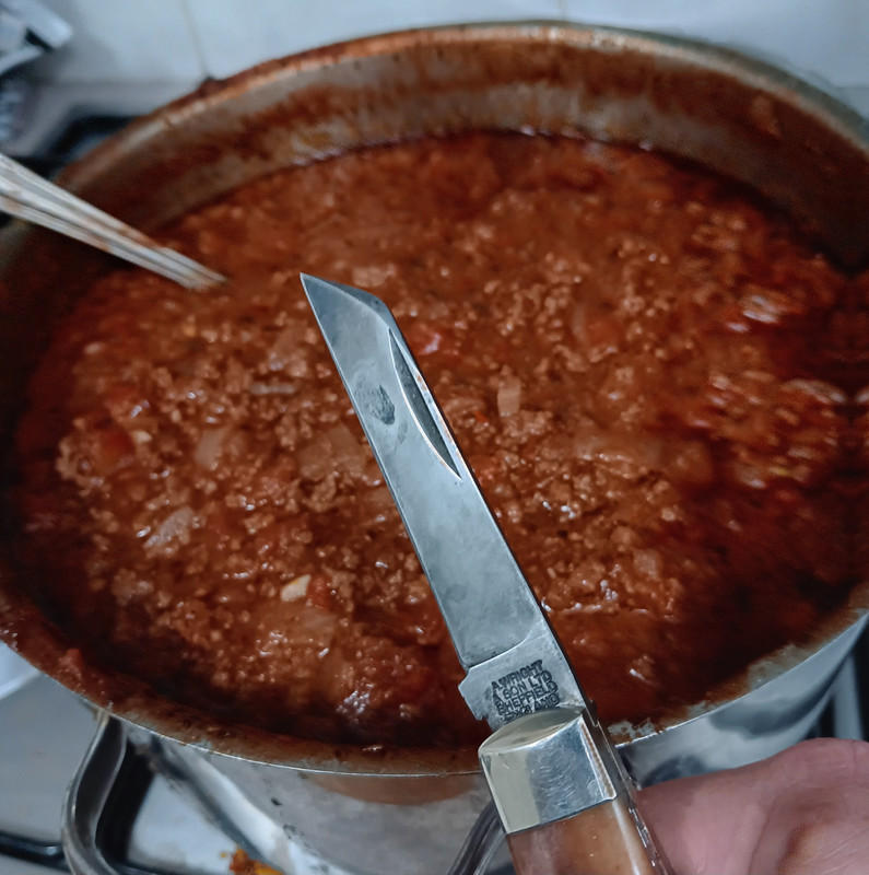 Nothing fancy,in old 1960s football terms a centre half of a knife.