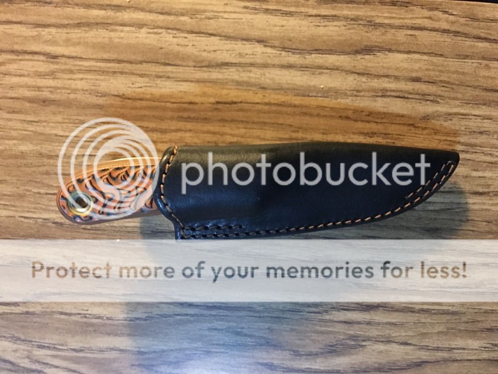 Warden HACK Warden that is .22 thick at the spine, hollow ground with a convex edge from factory, beautiful orange/black G-10 slabs and is razor sharp. It comes with a leather sheath made for it with orange stitching. $SOLD shipped priority USPS.