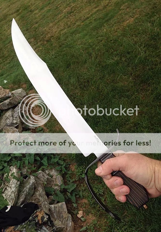 Up for sale is a stock removal blade I call "Hair of the Grizzly". The name is derived from its tangle with my Grizzly 2" x 72" Belt Grinder. At only 1 hp, the motor switch fried while grinding this beast and I had to have a new one installed. Both the blade and the grinder will live to fight another day. After this incident, I purchased a KMG 3 hp 2" x 72" with all the bells and whistles. But, I'll keep my Grizzly till she dies.