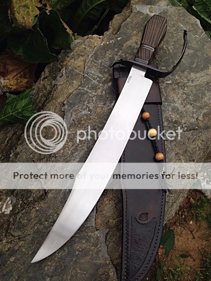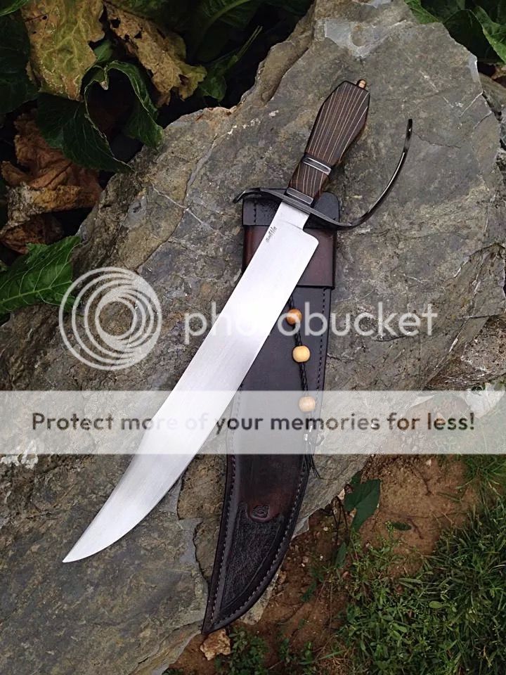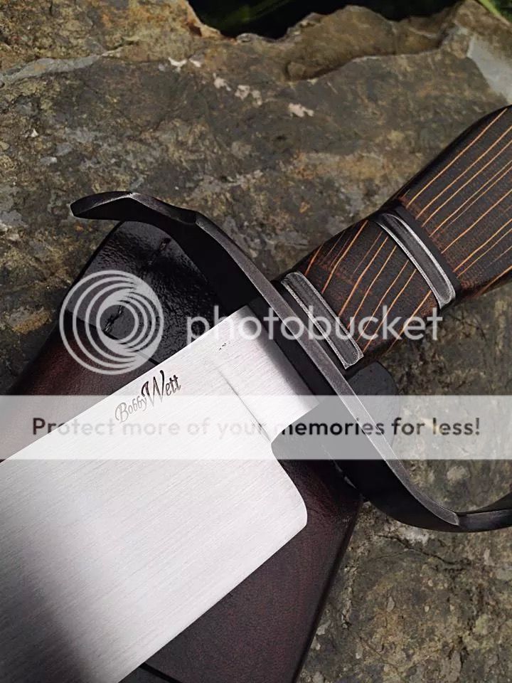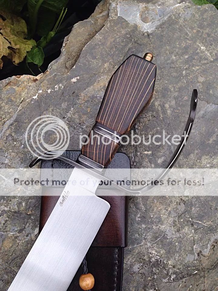 Up for sale is a stock removal blade I call "Hair of the Grizzly". The name is derived from its tangle with my Grizzly 2" x 72" Belt Grinder. At only 1 hp, the motor switch fried while grinding this beast and I had to have a new one installed. Both the blade and the grinder will live to fight another day. After this incident, I purchased a KMG 3 hp 2" x 72" with all the bells and whistles. But, I'll keep my Grizzly till she dies.